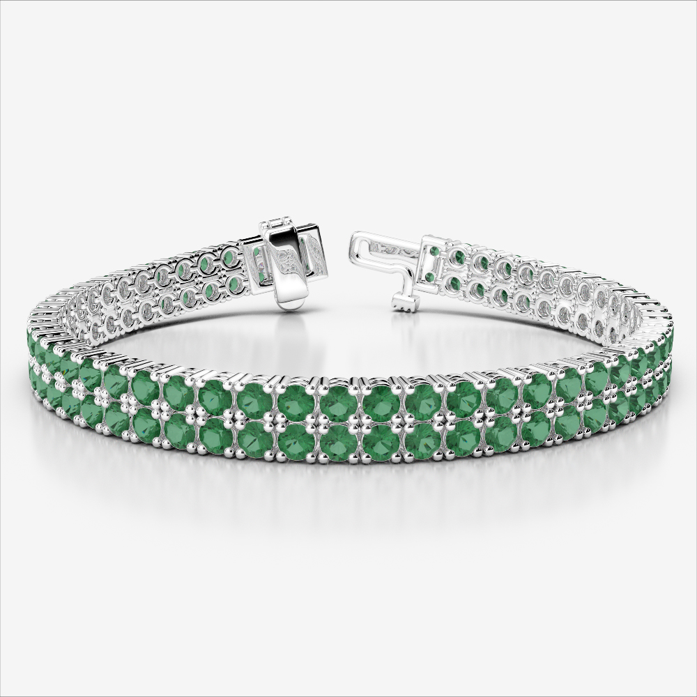 Elevate your collection with this Round Cut Emerald Tennis Bracelet. Prong set Emeralds sparkle with intensity, while the fluid design ensures comfort and grace. A luxurious expression of beauty and refinement.
