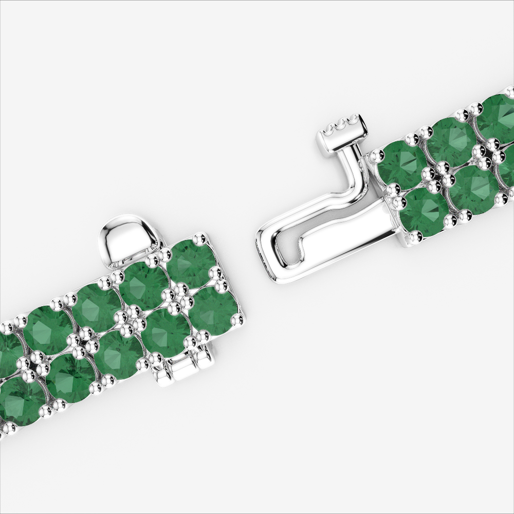 This Double Row Prong Set Round Cut Emerald Tennis Bracelet combines classic charm with luminous sparkle. Prong set for brilliance, each Emerald forms a radiant link in this timeless treasure.