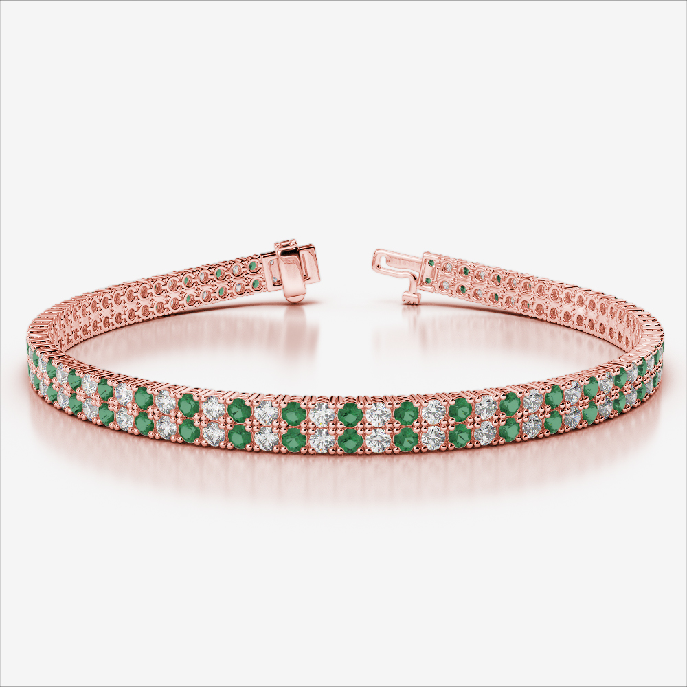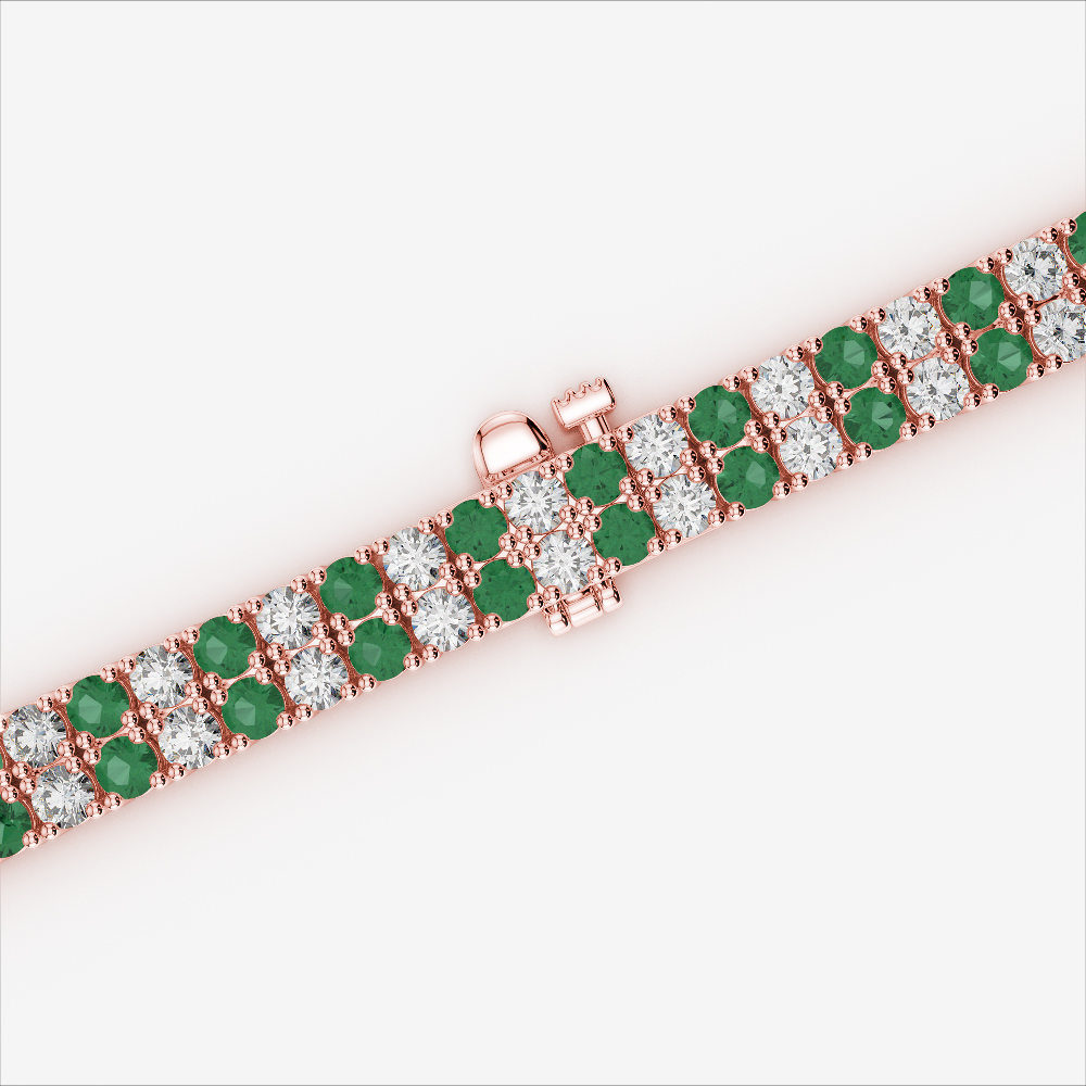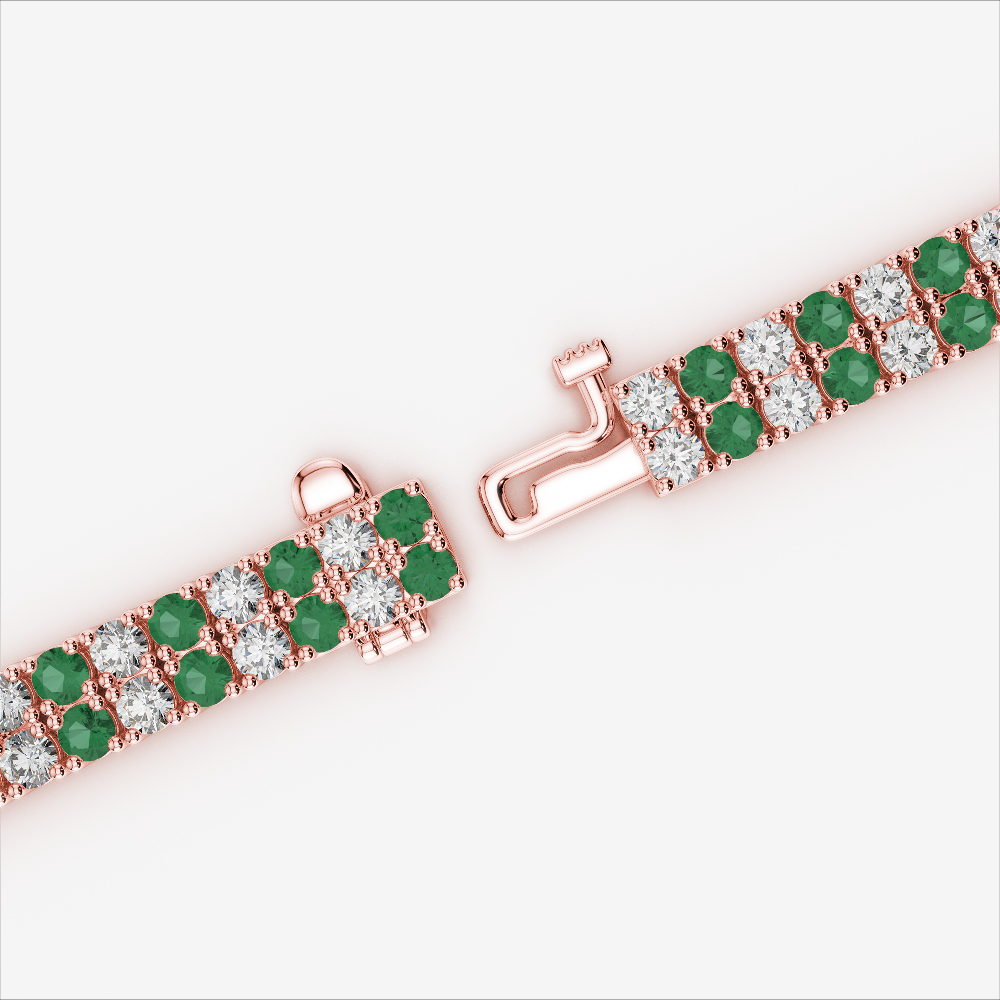 Adorn yourself with this dazzling Double Row Prong Set Emerald and Diamond Bracelet, where classic beauty meets modern finesse. Round-cut stones set in delicate prongs sparkle effortlessly, creating a luxurious piece suited for weddings, anniversaries, or everyday grace. A keepsake to treasure, it symbolises love and elegance in one elegant design.