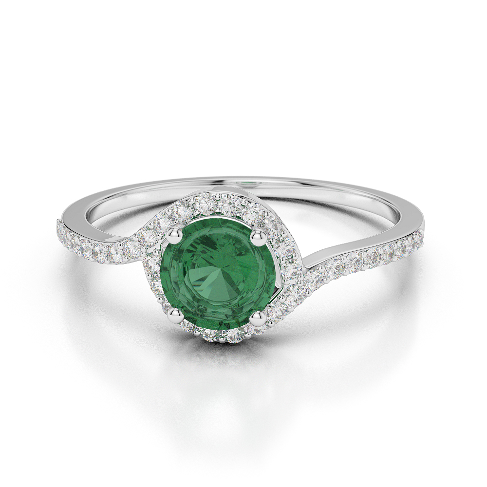 Prong Set Emerald Engagement Ring With Diamond 0054