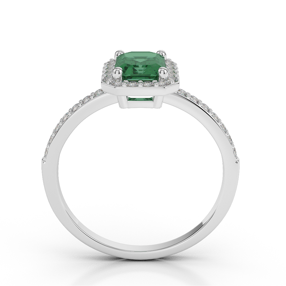 Prong Set Engagement Ring With Emerald and Diamond 0040