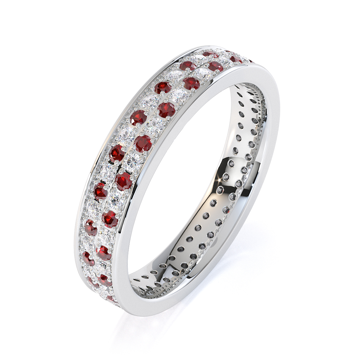 Prong Set Garnet and Diamond Full Eternity Ring 0430