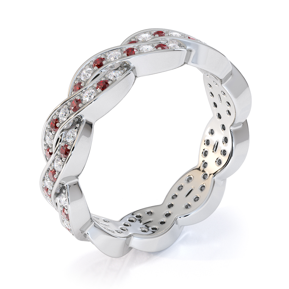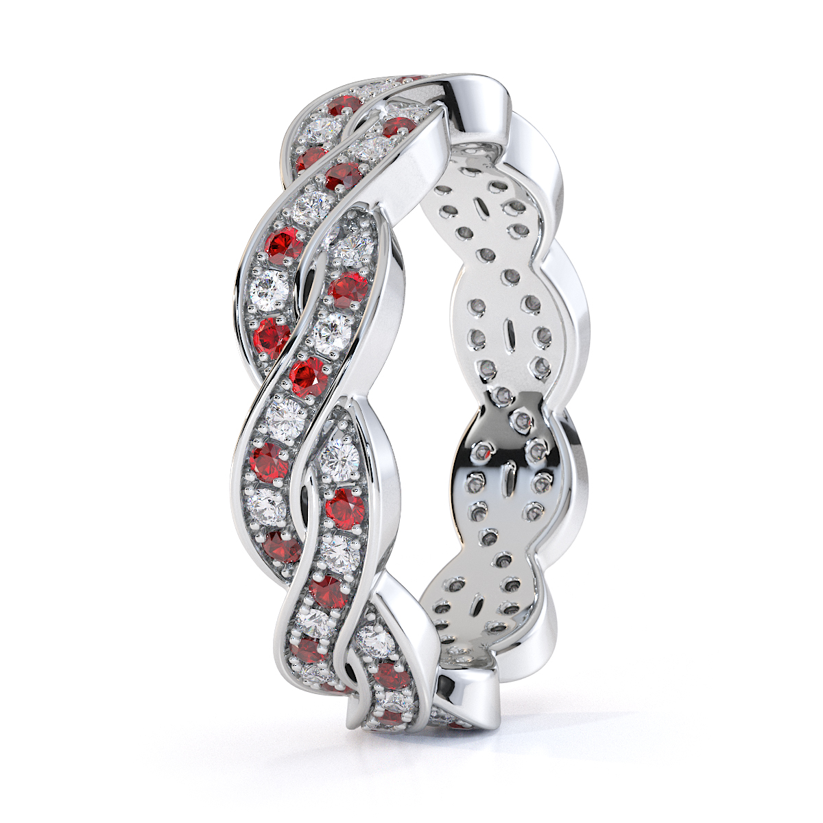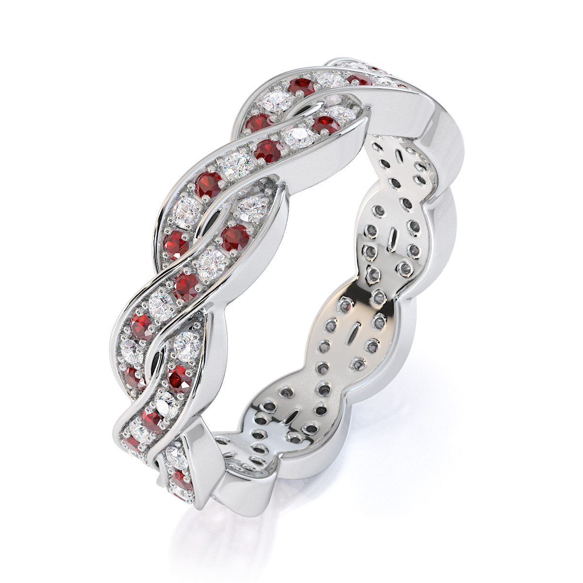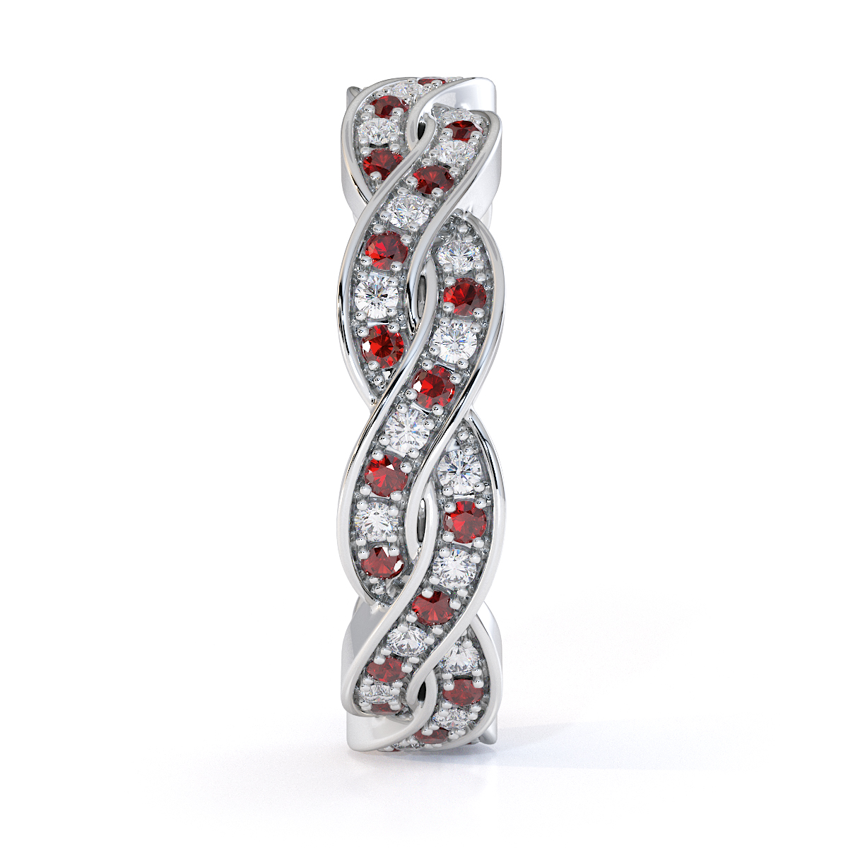 This exquisite full eternity ring features a stunning combination of garnets and diamonds. The prong setting enhances the brilliance of the gem, creating a luxurious and elegant piece of jewellery perfect for any special occasion.