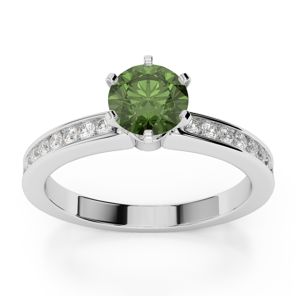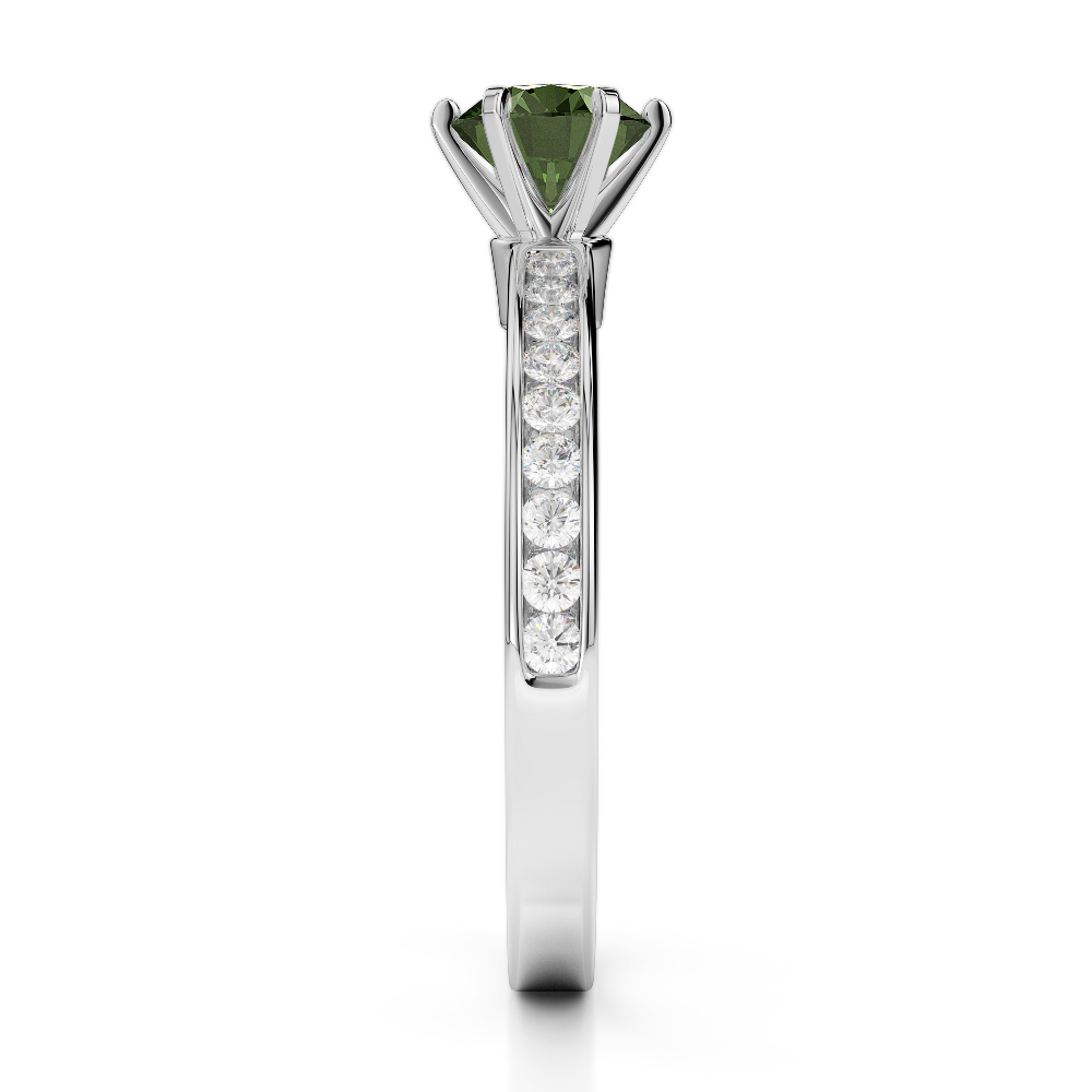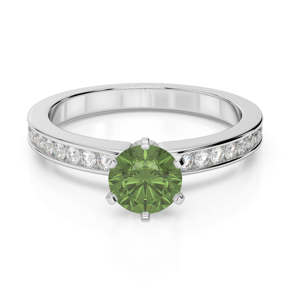 Prong Set Green Tourmaline and Channel Set Diamond Engagement Ring 0212