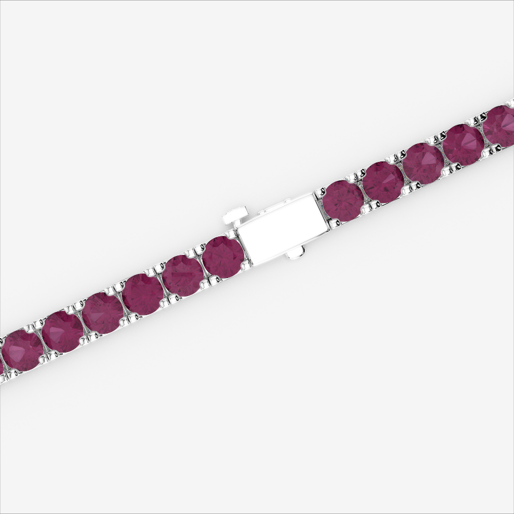 Every prong set Ruby in this Round Cut Ruby Tennis Bracelet is meticulously selected for clarity and brilliance. The result is a sophisticated piece that exudes elegance and refinement. A classic staple in any fine jewellery collection.
