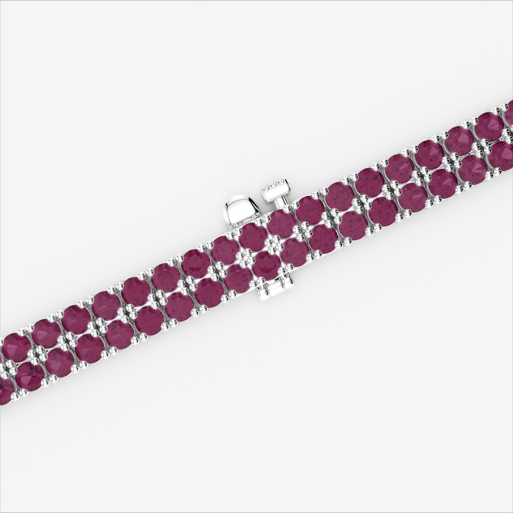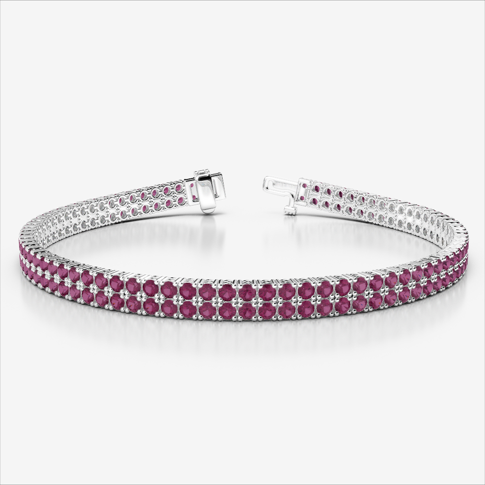 This Double Row Prong Set Round Cut Ruby Tennis Bracelet combines classic charm with luminous sparkle. Prong set for brilliance, each Ruby forms a radiant link in this timeless treasure.