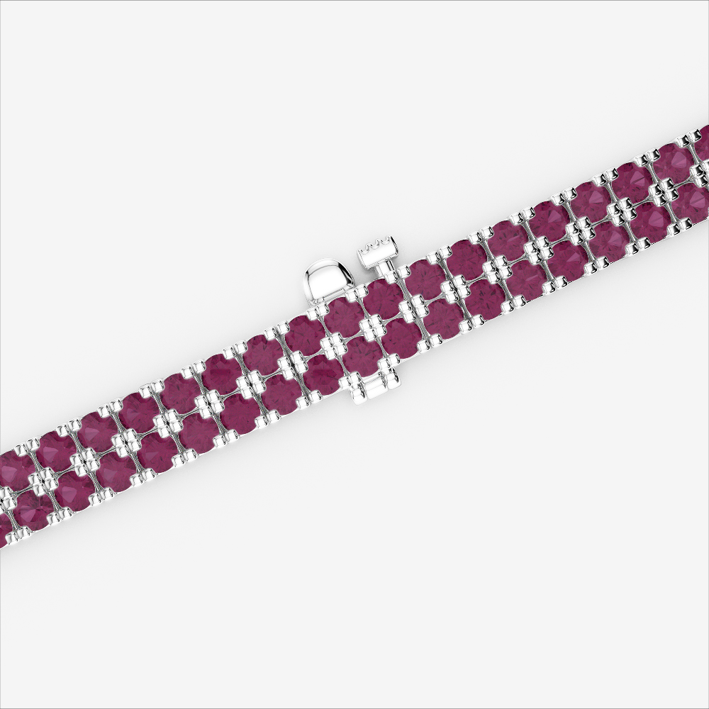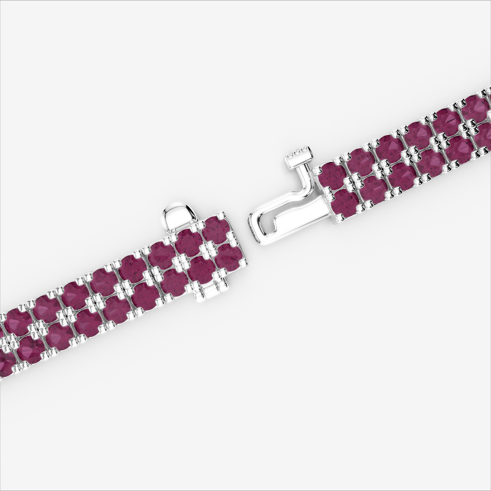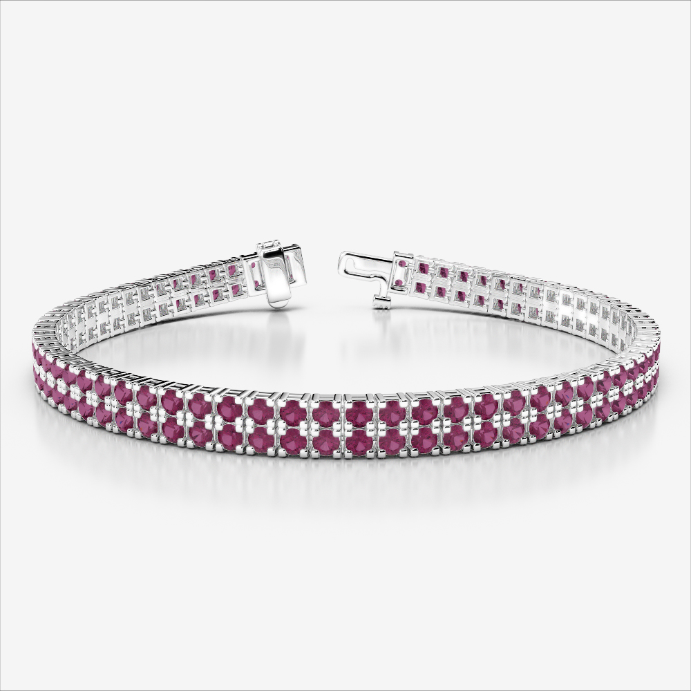 This Double Row Prong Set Round Cut Ruby Tennis Bracelet is a refined expression of luxury. Each Ruby is hand-selected for brilliance, forming a continuous, sparkling band that embodies timeless grace and exquisite craftsmanship.
