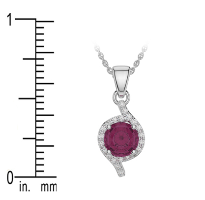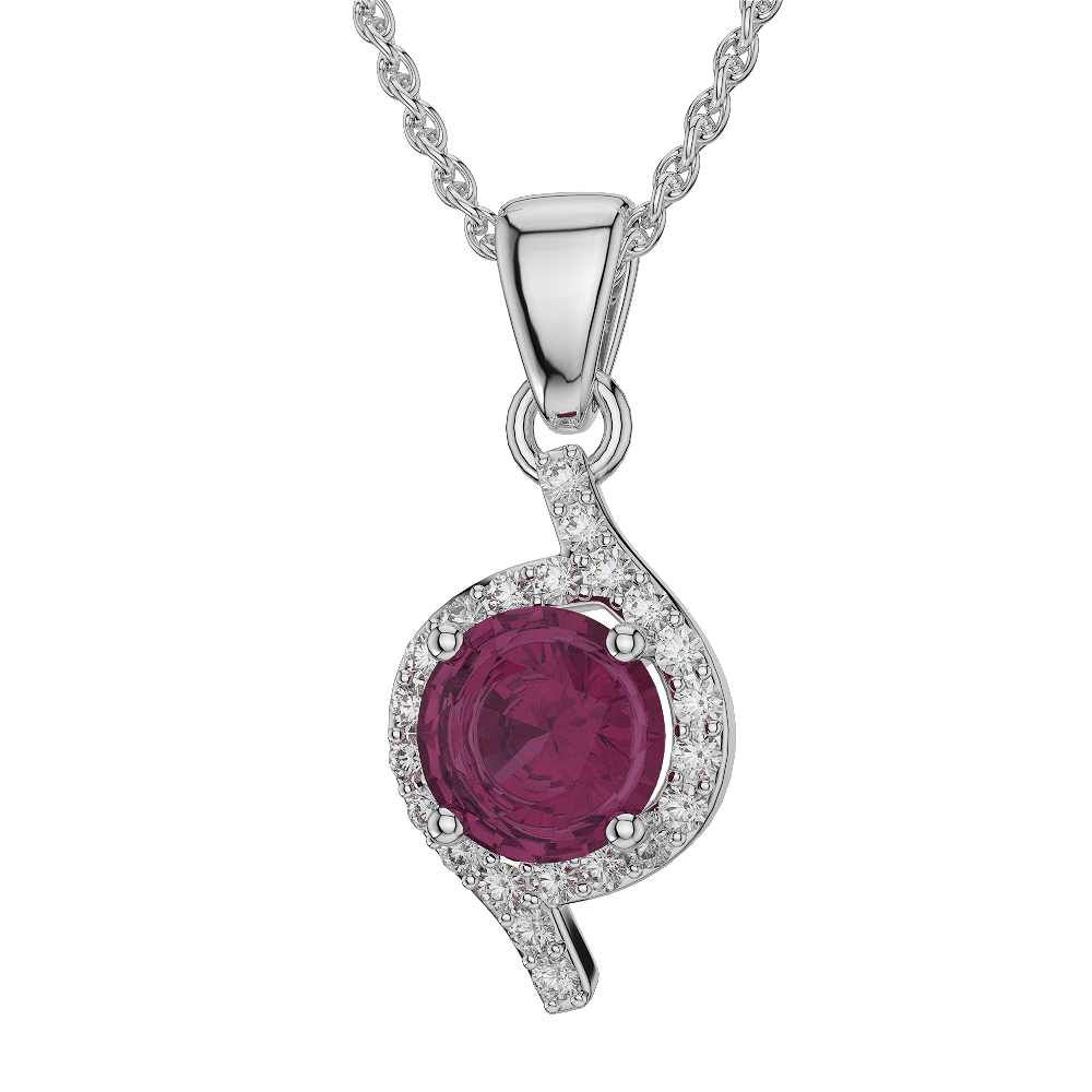 The magnificent pendant, with ruby and diamonds, perfectly strikes the right mix between style and sophistication. With a round design, it embodies the alluring allure of ruby, accentuated by the bright sparkle of diamonds. With its elegant design, the necklace sets off any outfit, while the prong setting keeps the stones in place. Enhance your appearance with this timeless item.