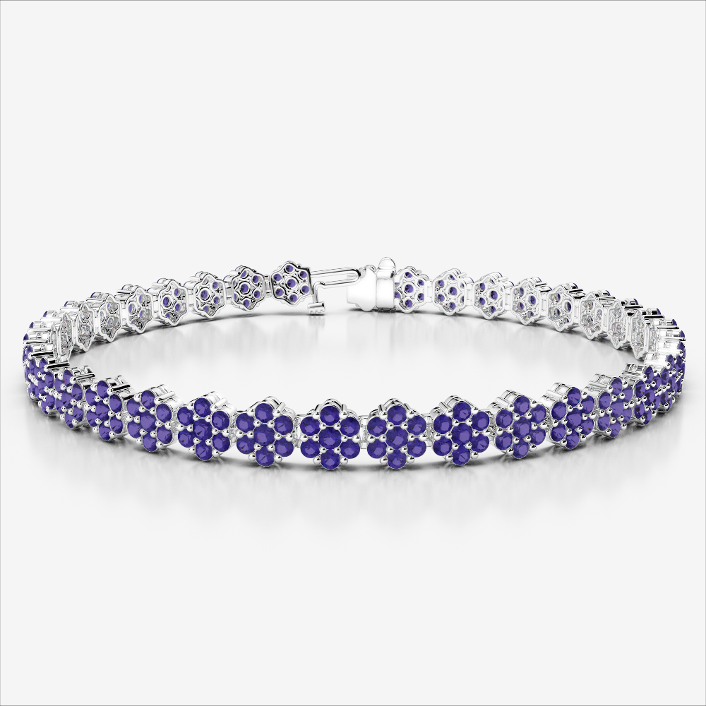 This Round Cut Tanzanite Tennis Bracelet is defined by its graceful arrangement of prong set Tanzanites. Each stone is handpicked for sparkle, creating a fluid design that reflects sophistication and luxury.