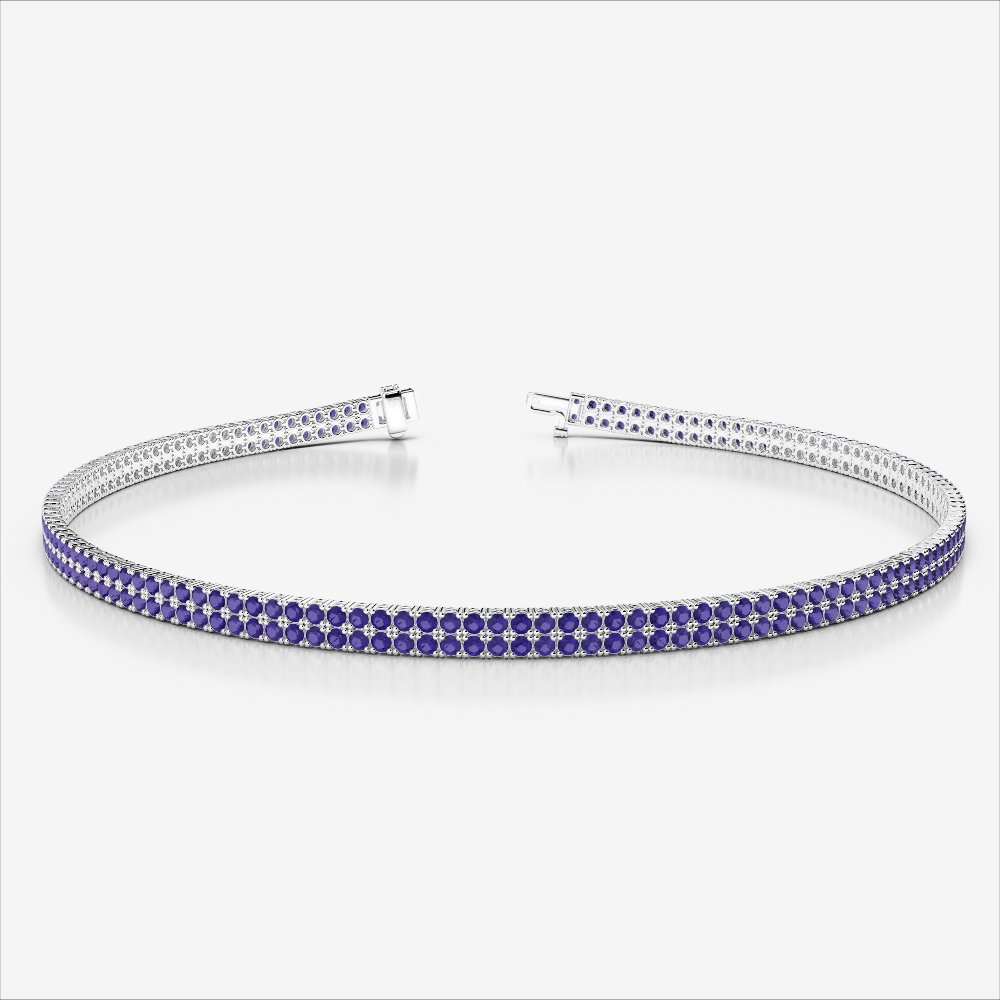 This Double Row Round Cut Tanzanite Tennis Bracelet is a refined expression of luxury. Each prong set Tanzanite is hand-selected for brilliance, forming a continuous, sparkling band that embodies timeless grace and exquisite craftsmanship.