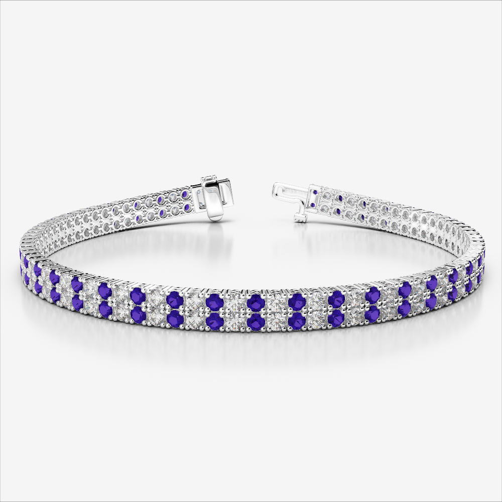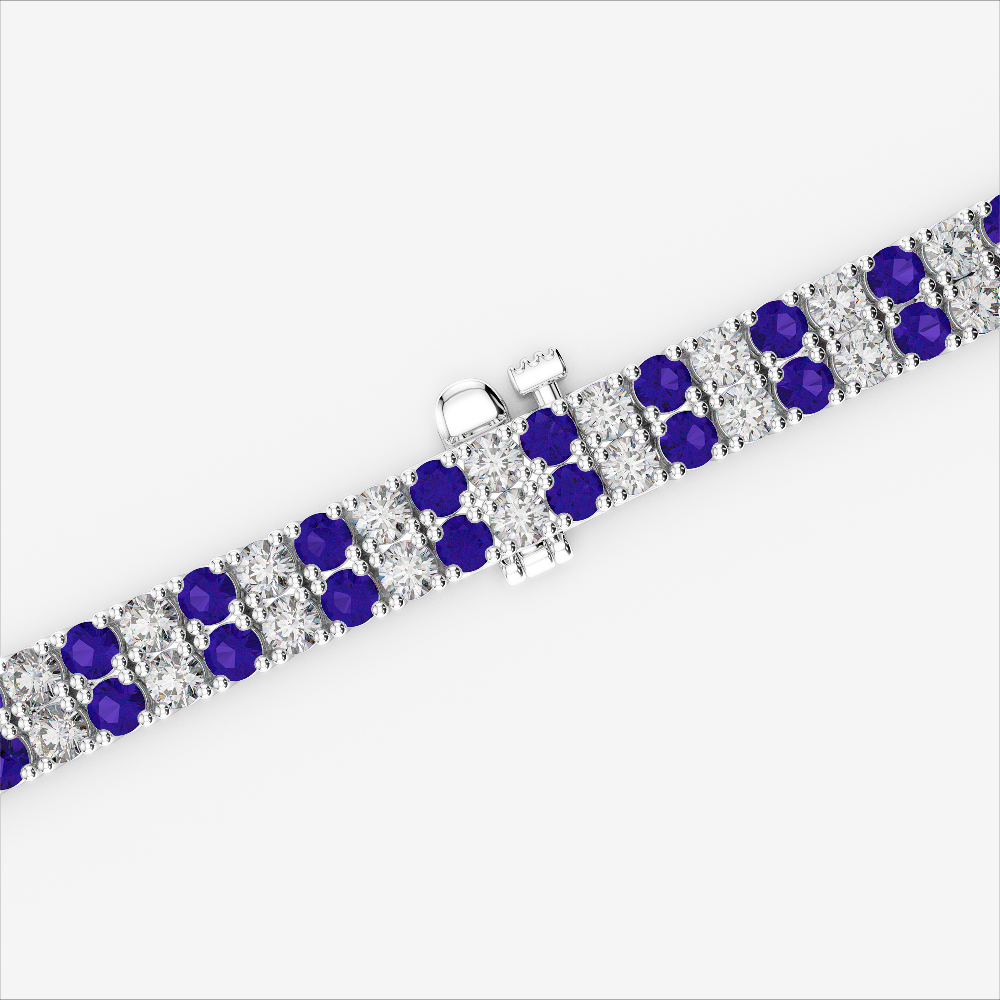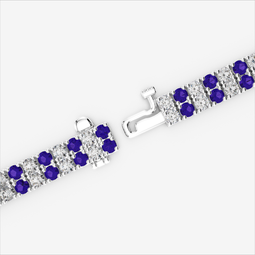 Adorn yourself with this dazzling Double Row Prong Set tanzanite and diamond bracelet, where classic beauty meets modern finesse. Round-cut stones set in delicate prongs sparkle effortlessly, creating a luxurious piece suited for weddings, anniversaries, or everyday grace. A keepsake to treasure, it symbolises love and elegance in one elegant design.