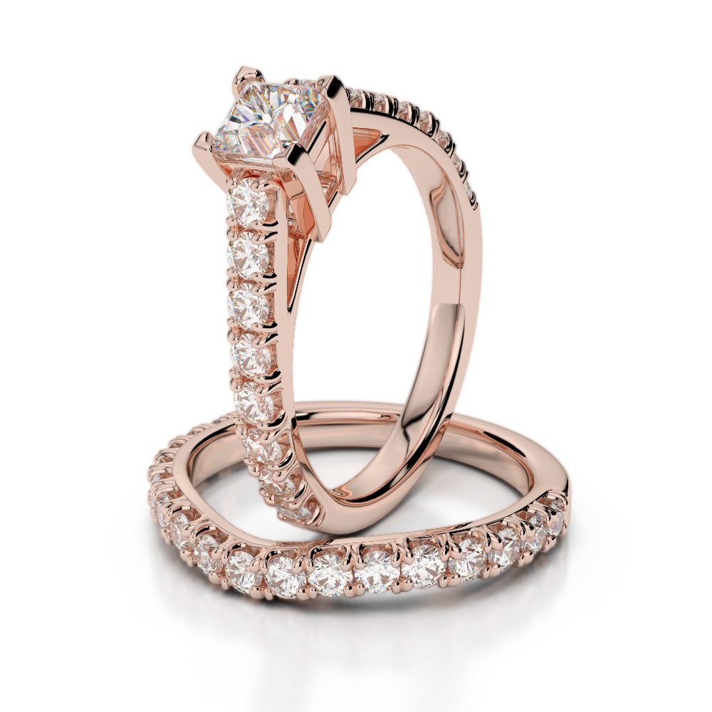 The Bridal Set Ring with Prong Setting is a stunning piece of jewellery featuring beautiful diamond bridal set adorned with princess-cut diamond. Crafted to symbolise love and commitment, these rings sparkle beautifully and are adorned with a prong setting for maximum security. This cherished treasure will be a perfect way to celebrate your special bond and serve as a cherished treasure for a lifetime.