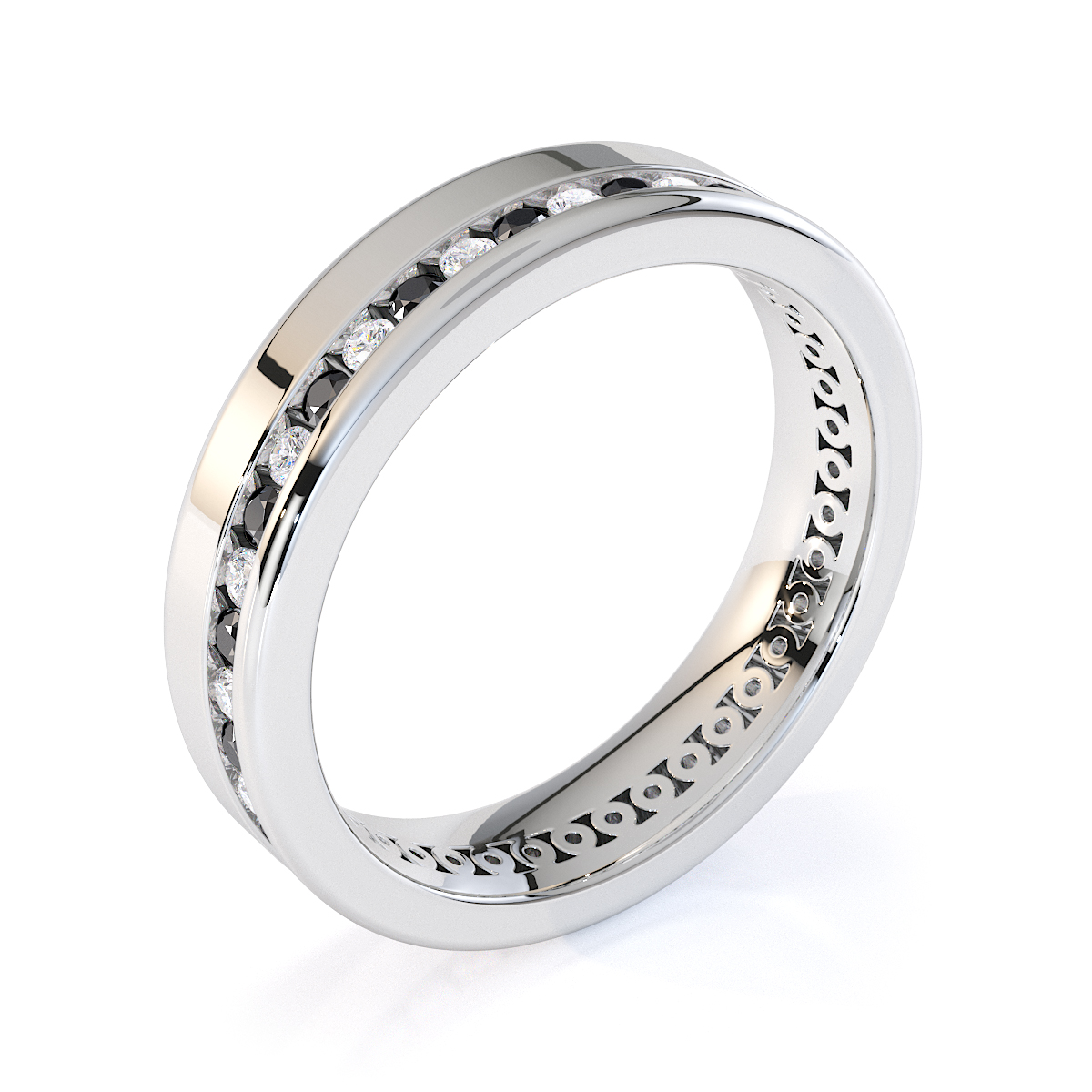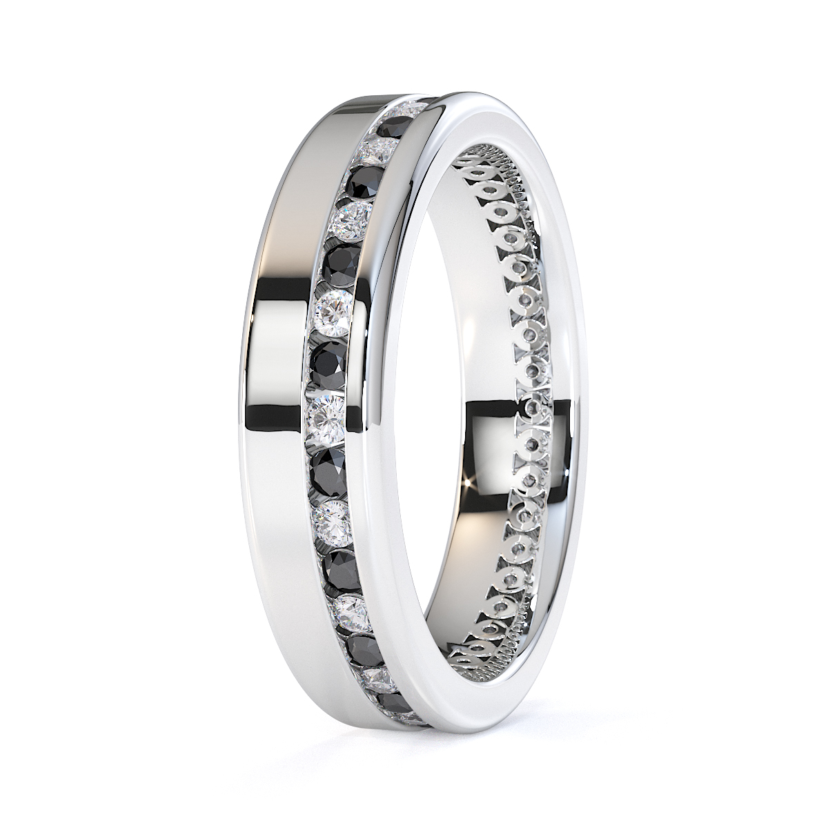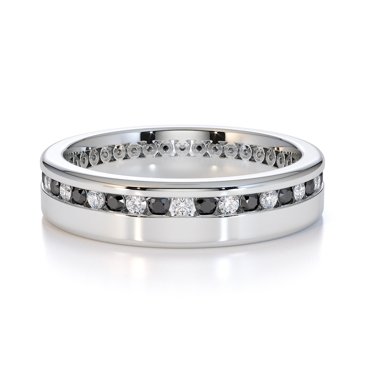 Our eternity ring is a stunning symbol of eternal love and commitment, featuring a full eternity design of black diamonds and diamonds. Crafted with precision, the channel setting enhances the brilliance of each gemstone, creating a mesmerizing sparkle. This timeless and luxurious piece is perfect for those seeking a cherished treasure to last forever.