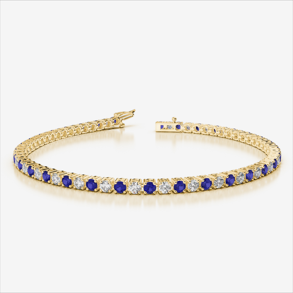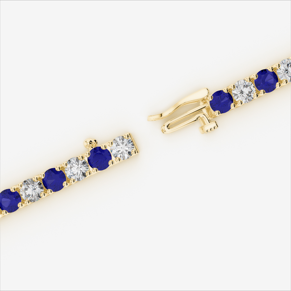Round Cut Blue Sapphire and Diamond Bracelet 0713