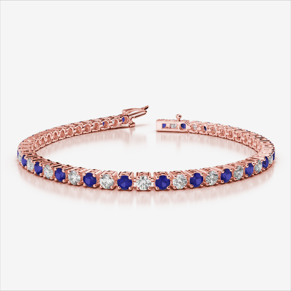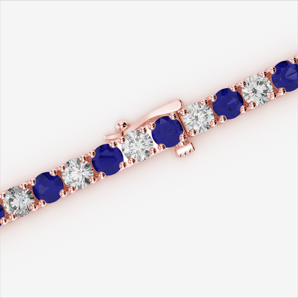 Round Cut Blue Sapphire and Diamond Bracelet 0715