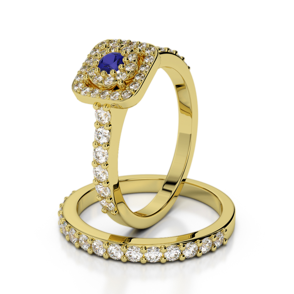 Round Cut Blue Sapphire and Diamond Bridal Set Ring 0322