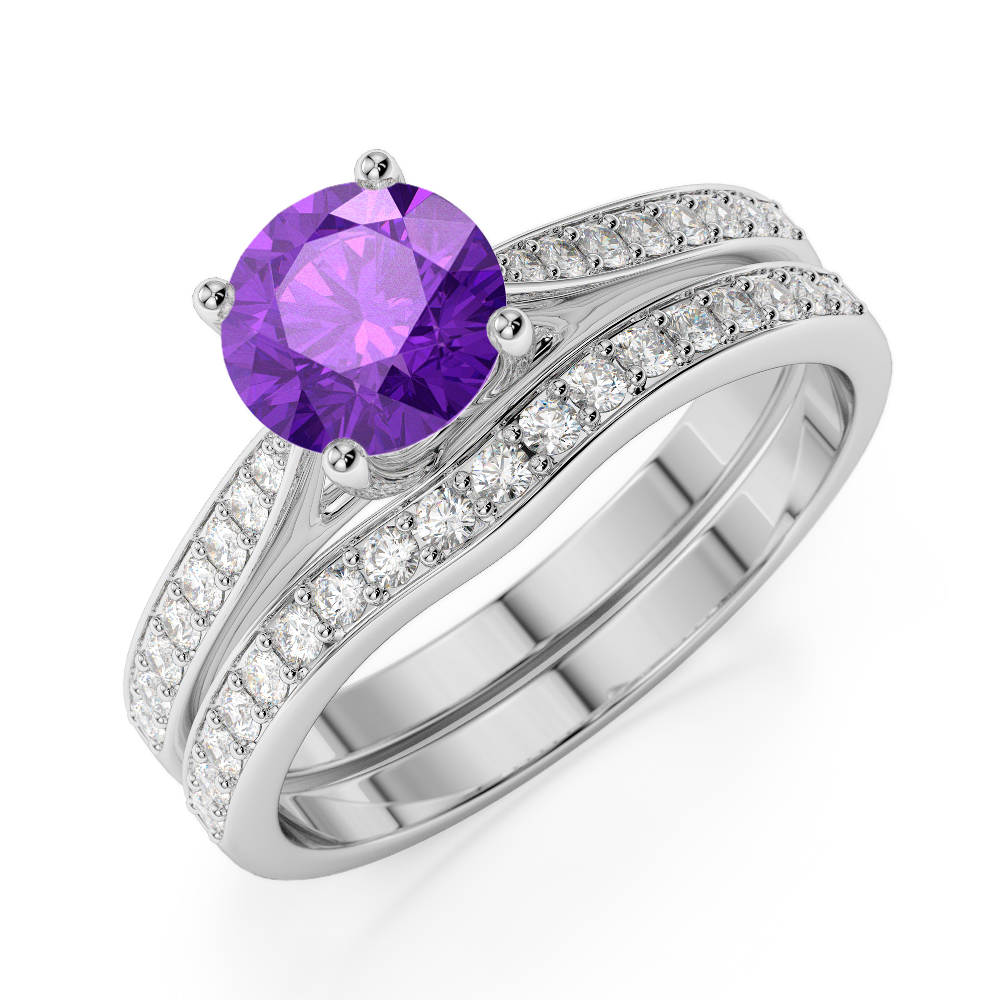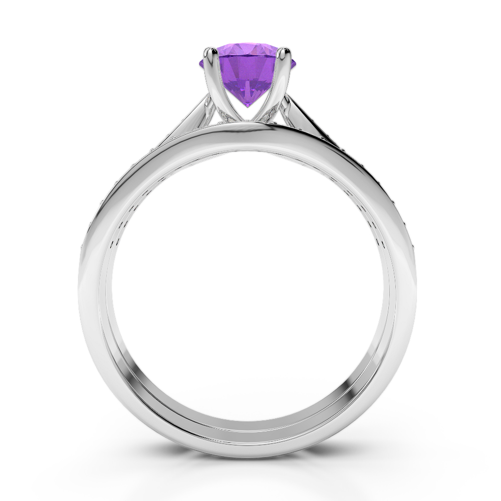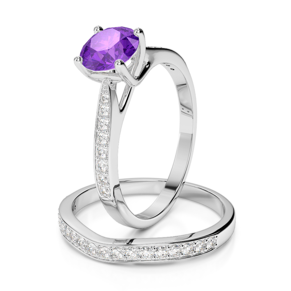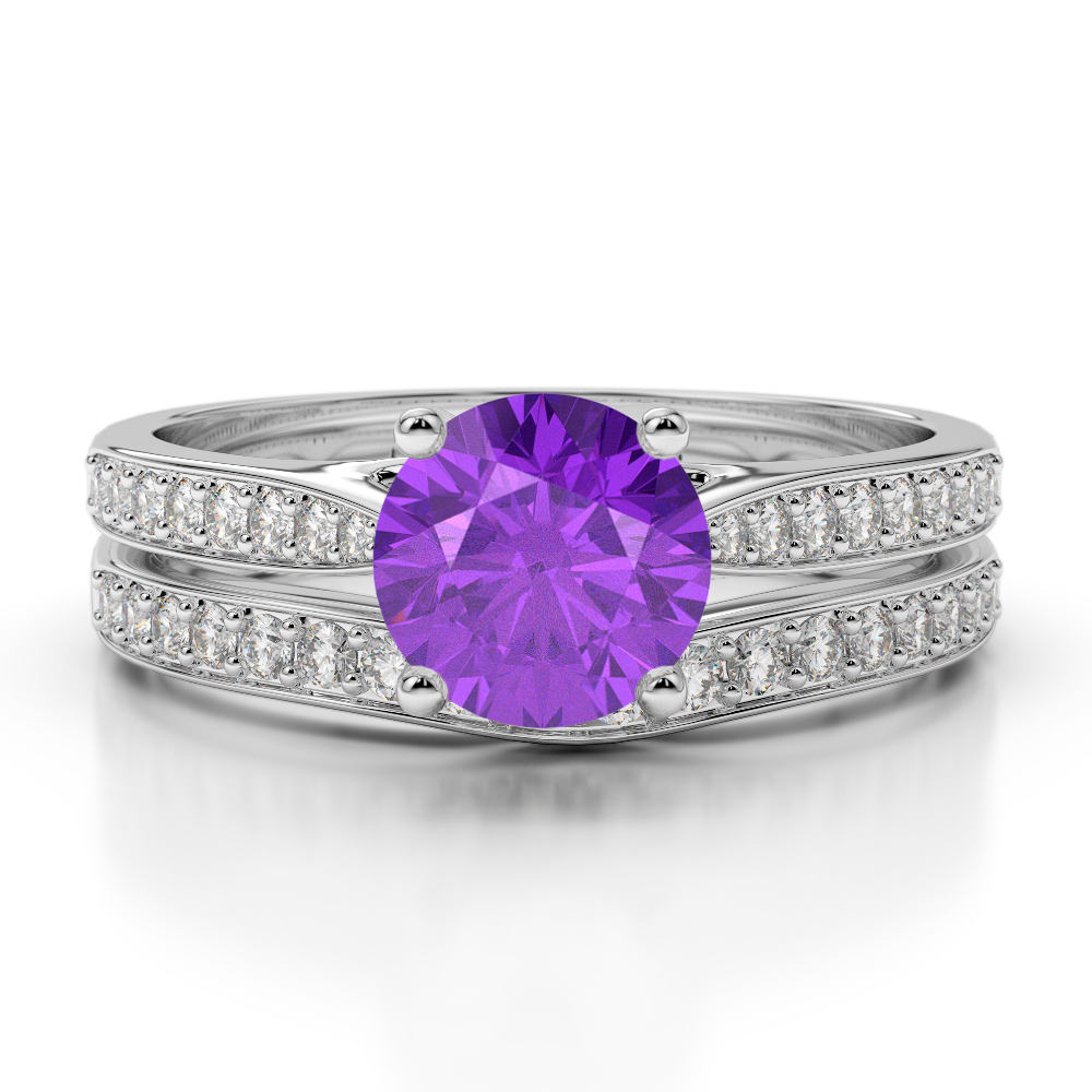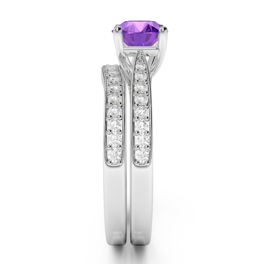 Round Cut Bridal Set Ring With Amethyst and Diamond 0350