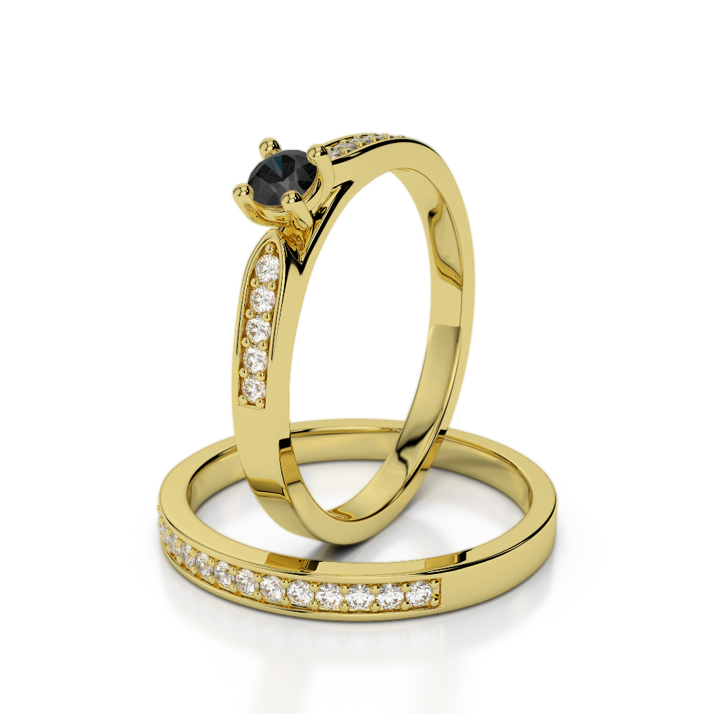 Round Cut Bridal Set Ring With Black Diamond 0293
