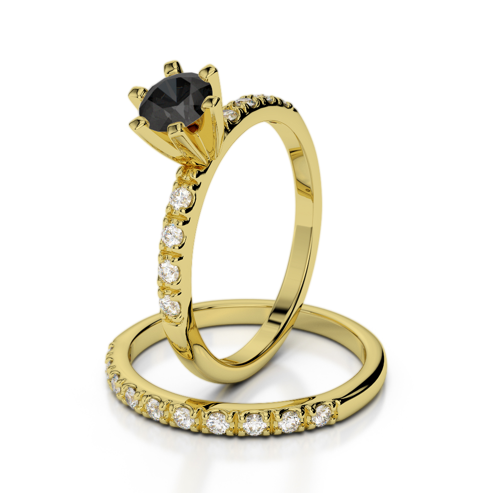 Round Cut Bridal Set Ring With Black Diamond 0304