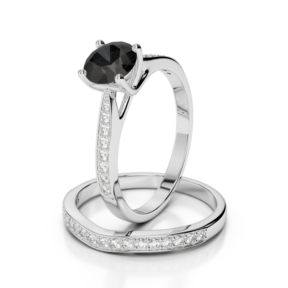 Round Cut Bridal Set Ring With Black Diamond 0350