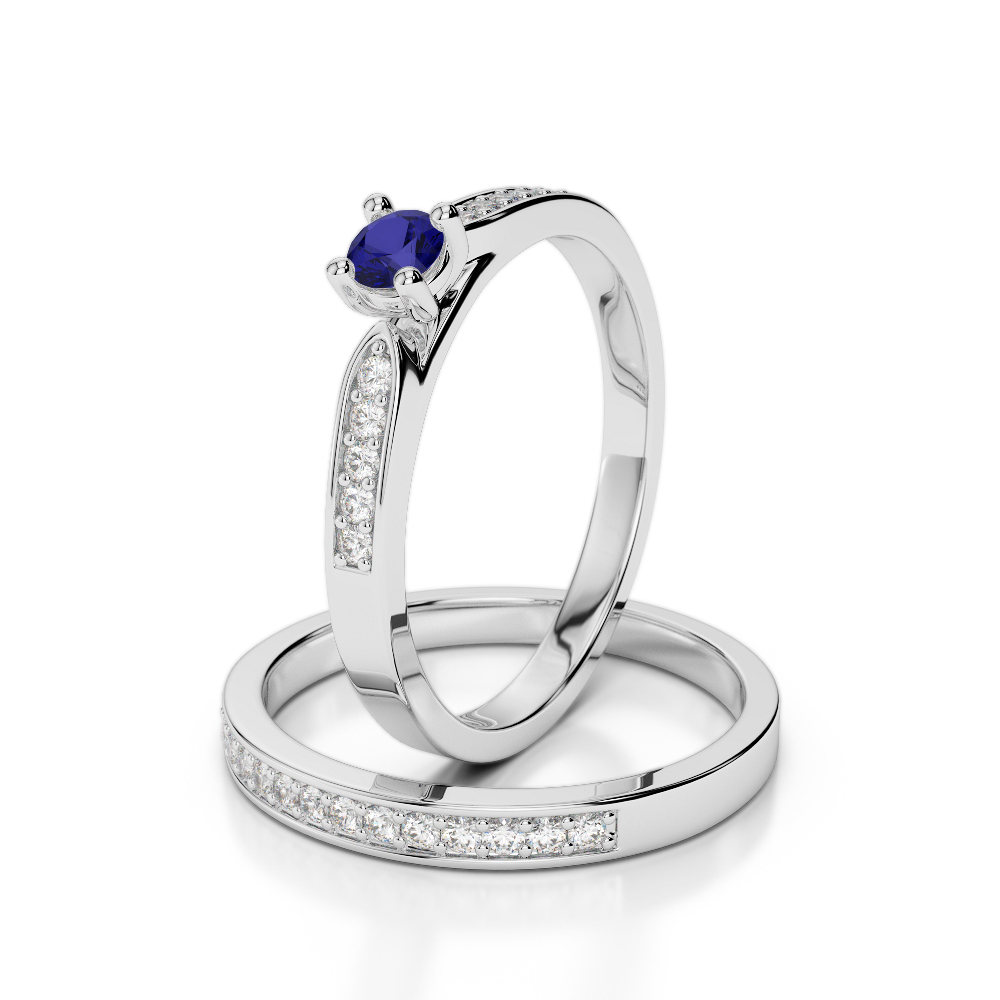 Round Cut Bridal Set Ring With Blue Sapphire and Diamond 0293