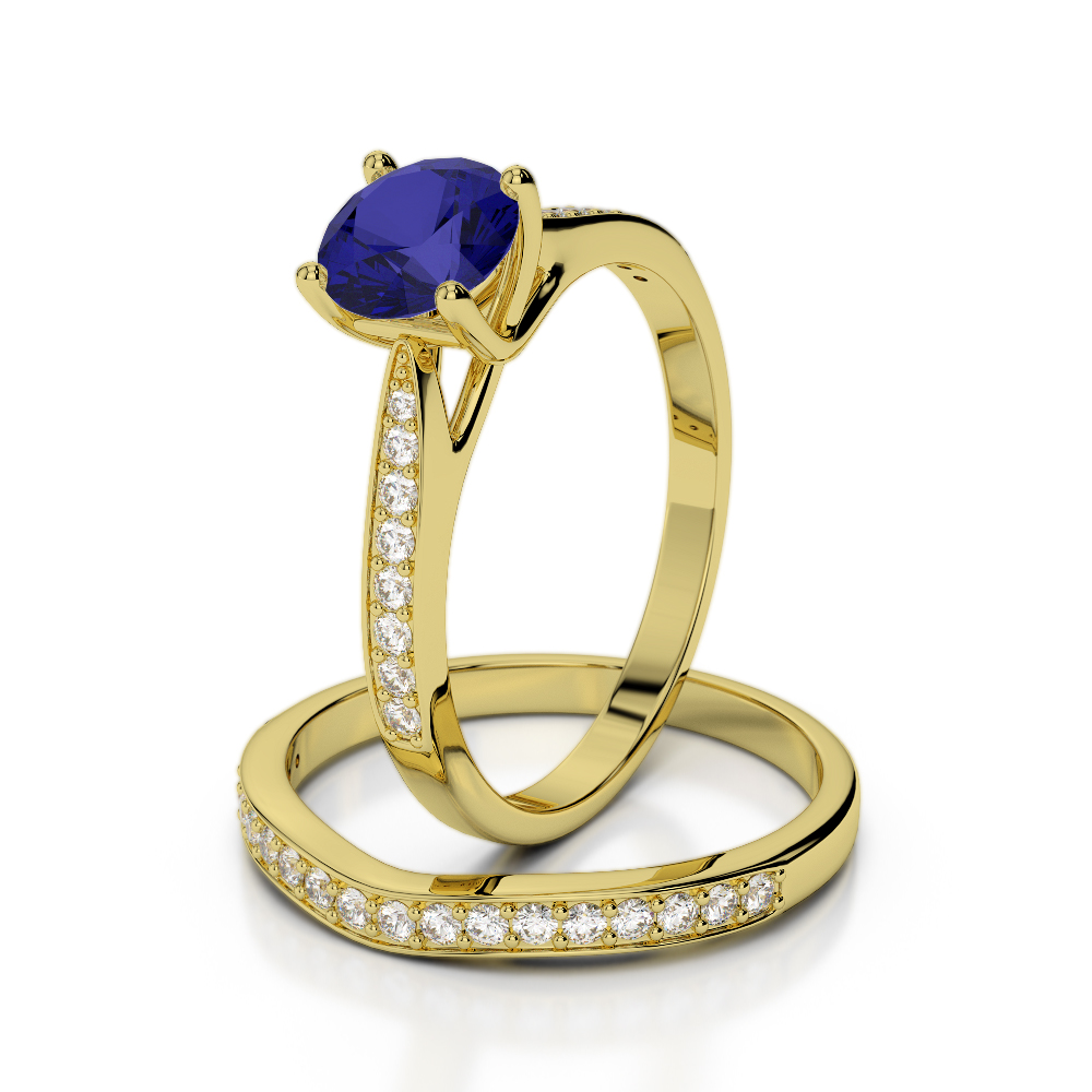 Round Cut Bridal Set Ring With Blue Sapphire and Diamond 0350