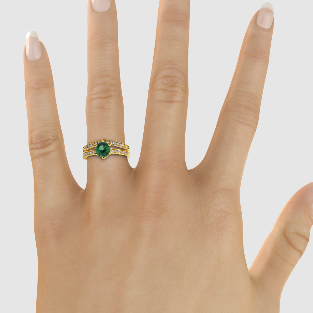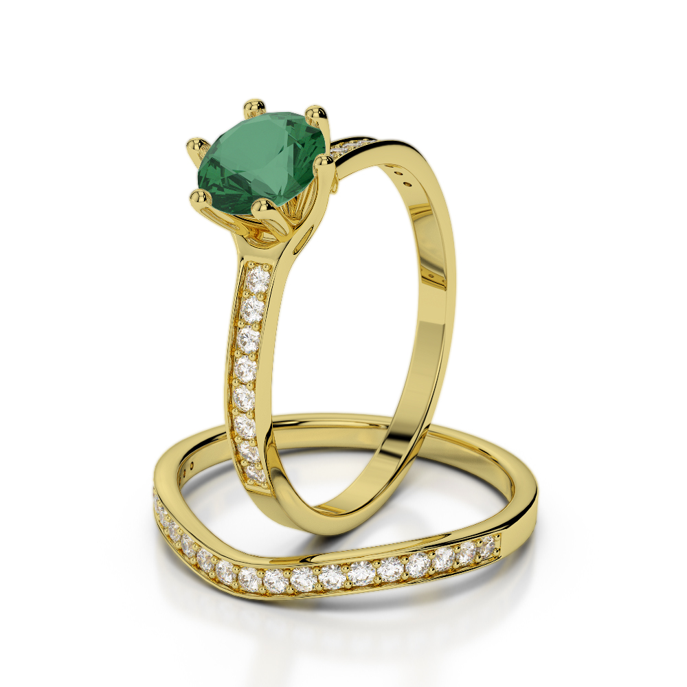 Round Cut Bridal Set Ring With Diamond & Emerald 0348