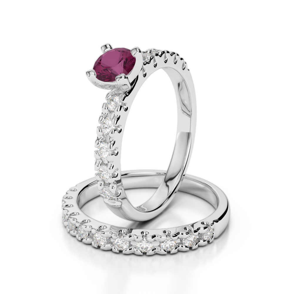 Round Cut Bridal Set Ring With Diamond & Ruby 0299