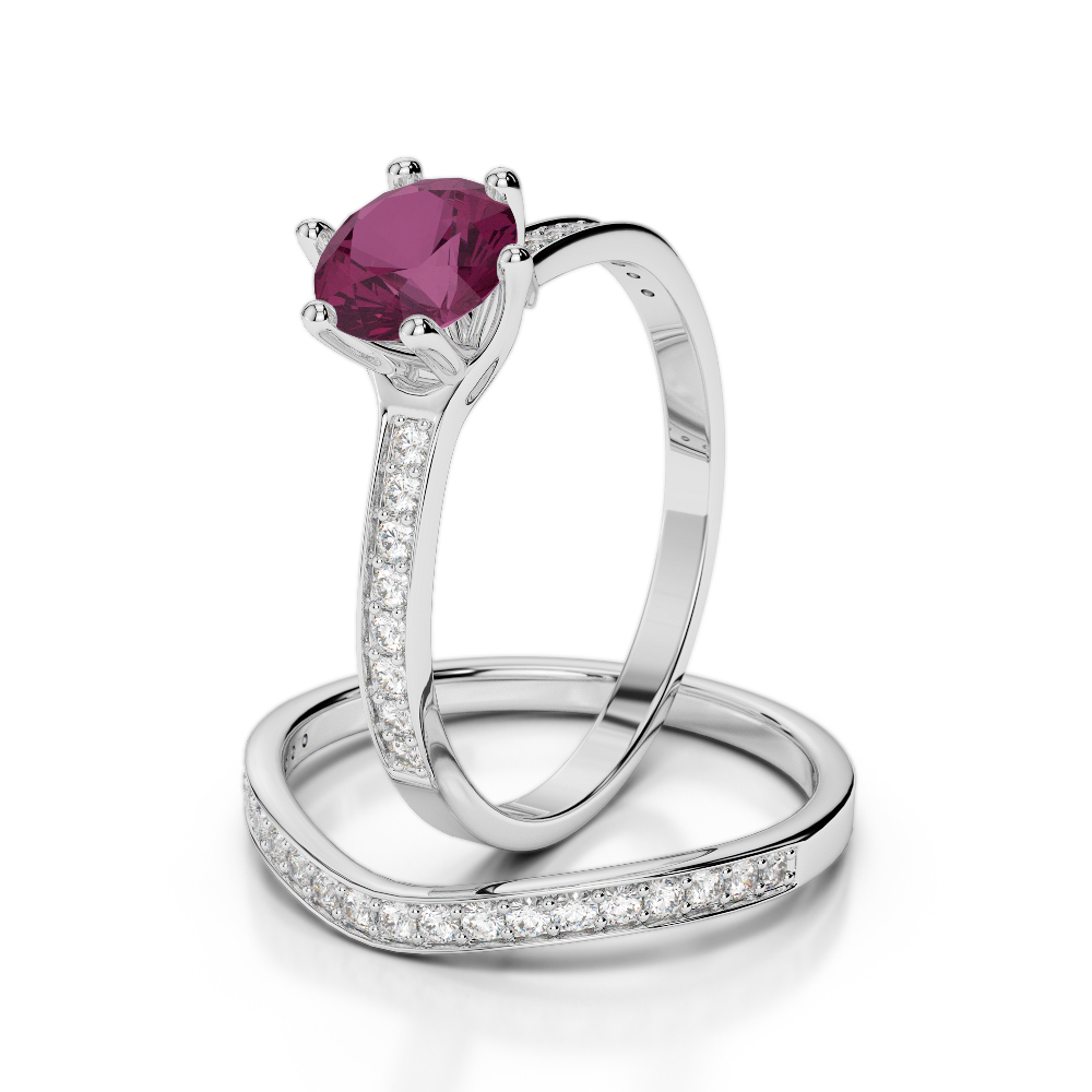 Round Cut Bridal Set Ring With Diamond & Ruby 0348