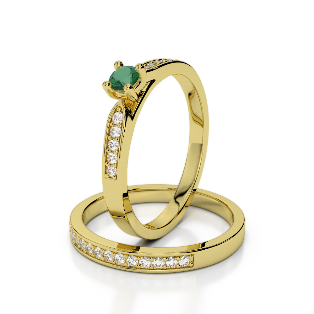Round Cut Bridal Set Ring With Emerald and Diamond 0293