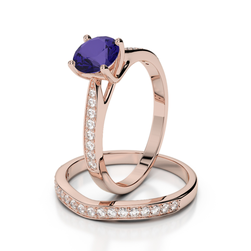 Round Cut Bridal Set Ring With Tanzanite and Diamond 0350