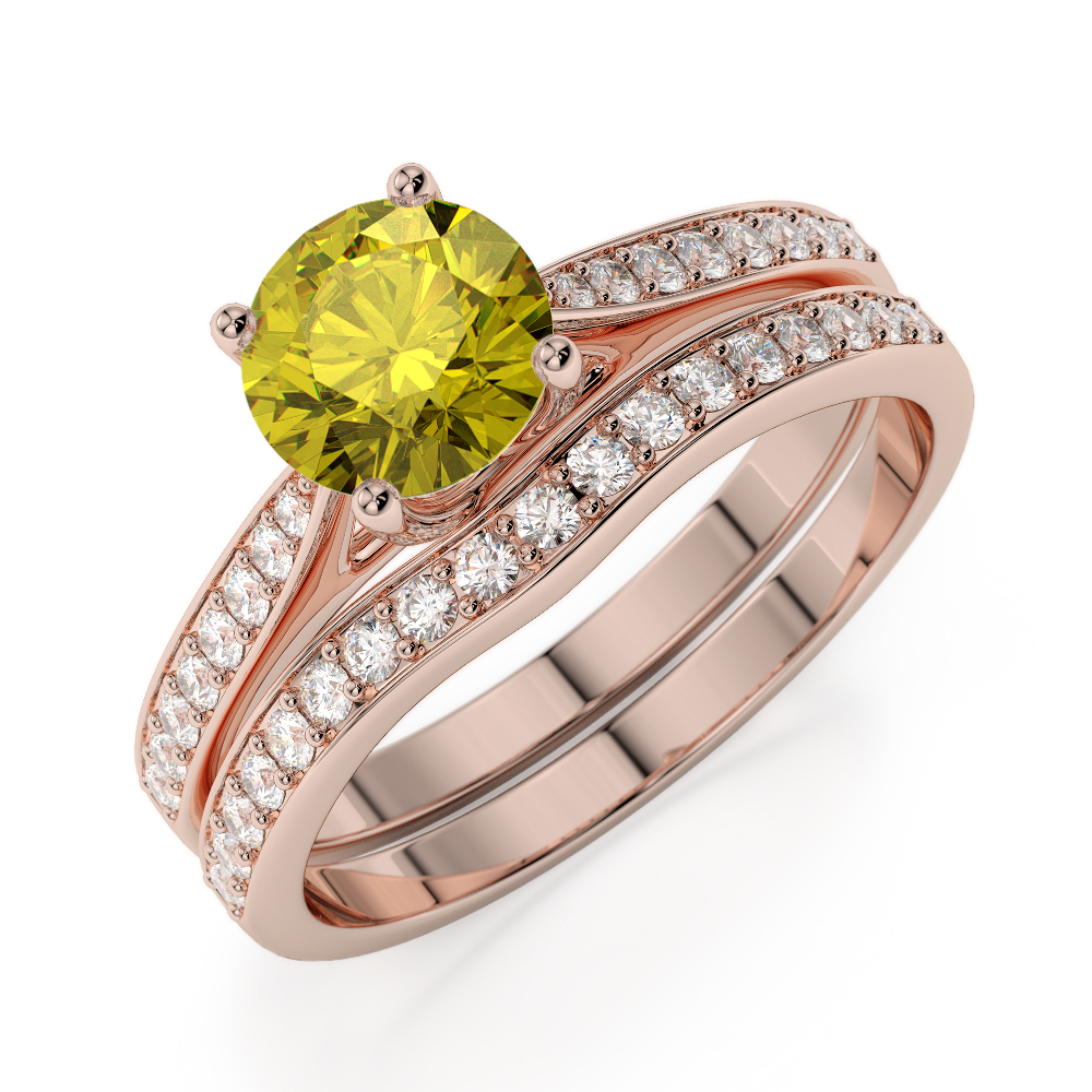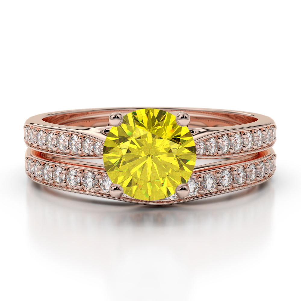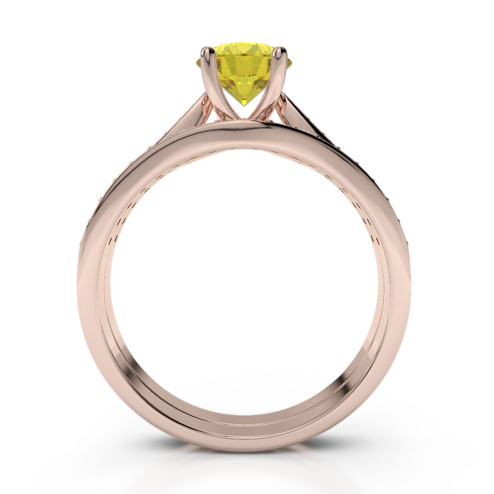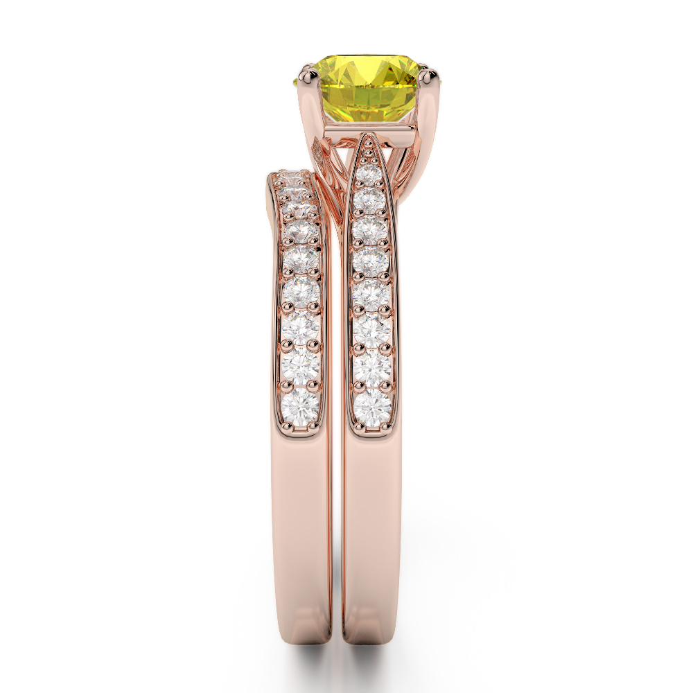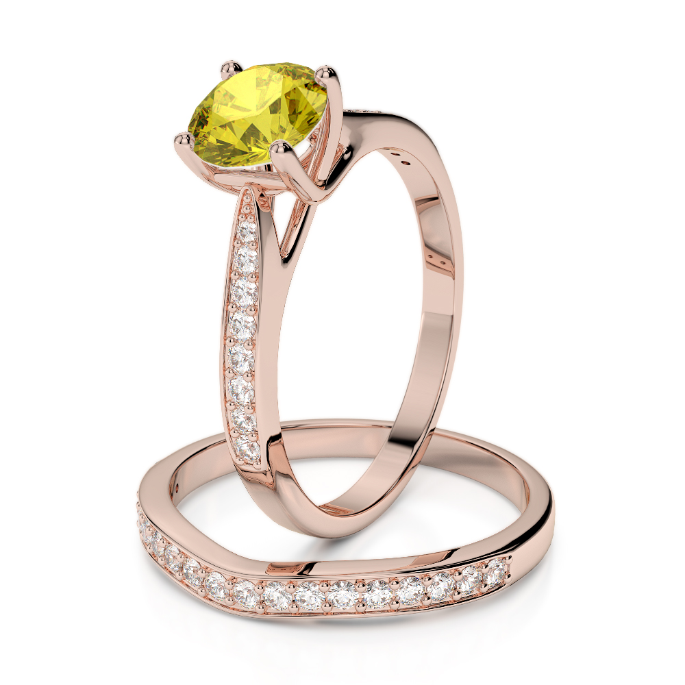 Round Cut Bridal Set Ring With Yellow Sapphire and Diamond 0350