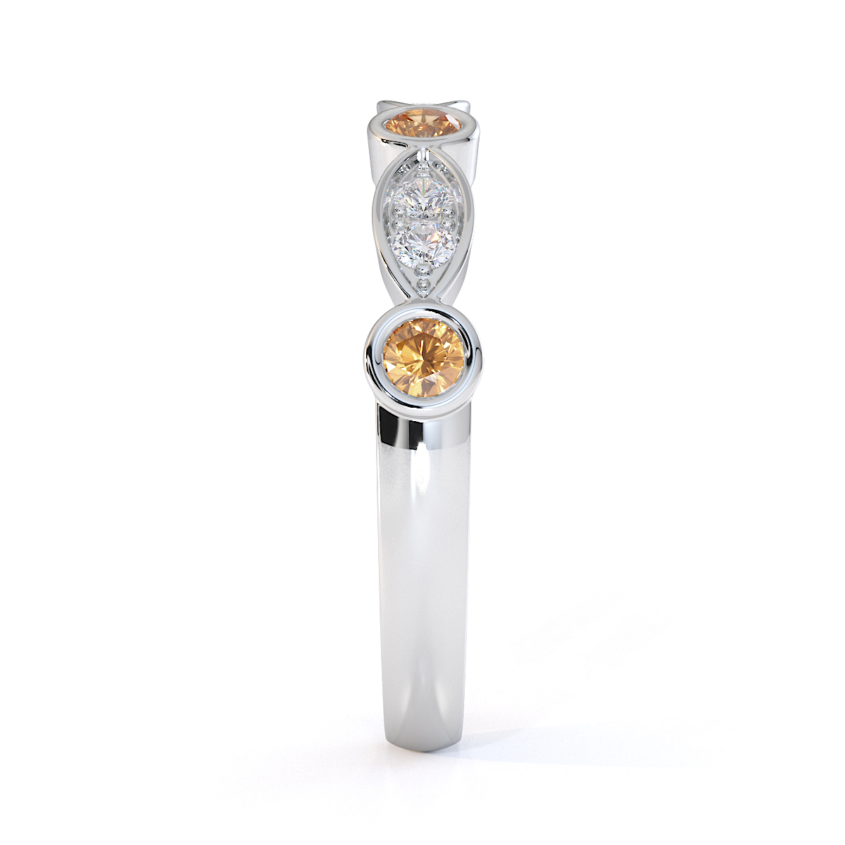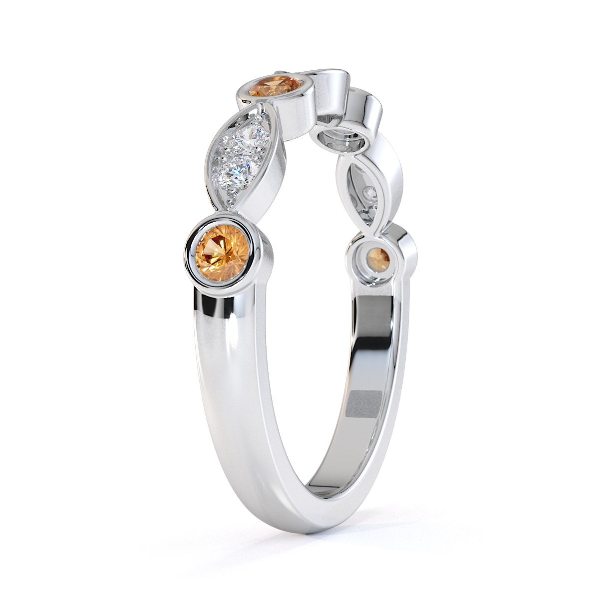 Round Cut Citrine and Diamond Half Eternity Ring 0435