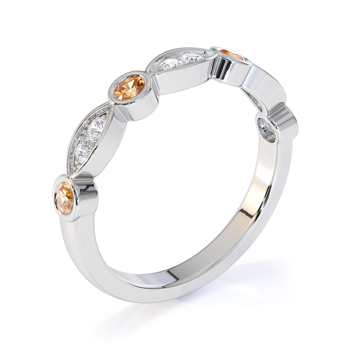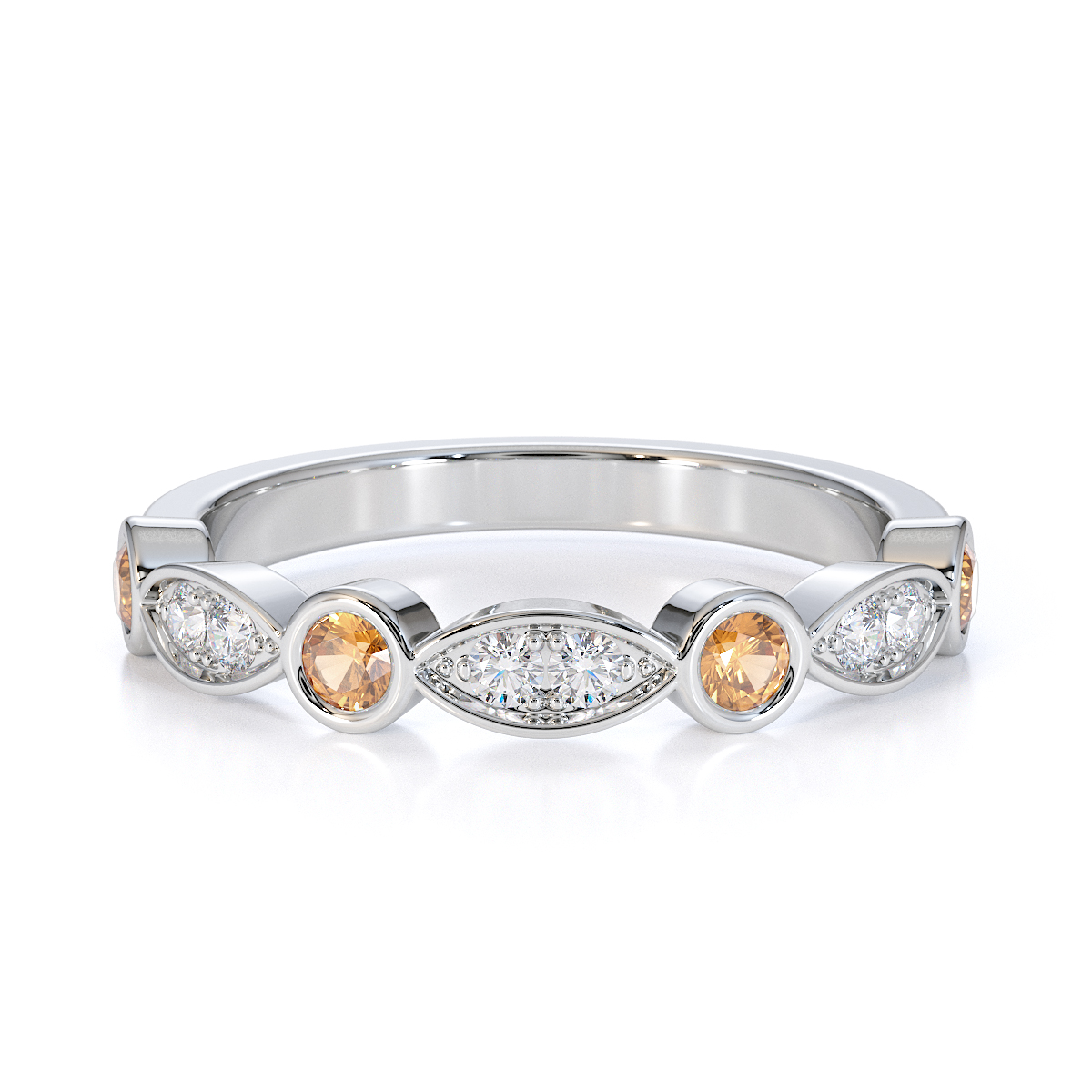 This citrine and diamond eternity ring is a stunning symbol of eternal love and elegance, set in a combination of prong and bezel settings. Crafted with precision and attention to detail, it radiates sophistication and grace. Whether chosen as a symbol of commitment or worn as a luxurious accessory, this timeless piece is sure to captivate hearts and leave a lasting impression.
