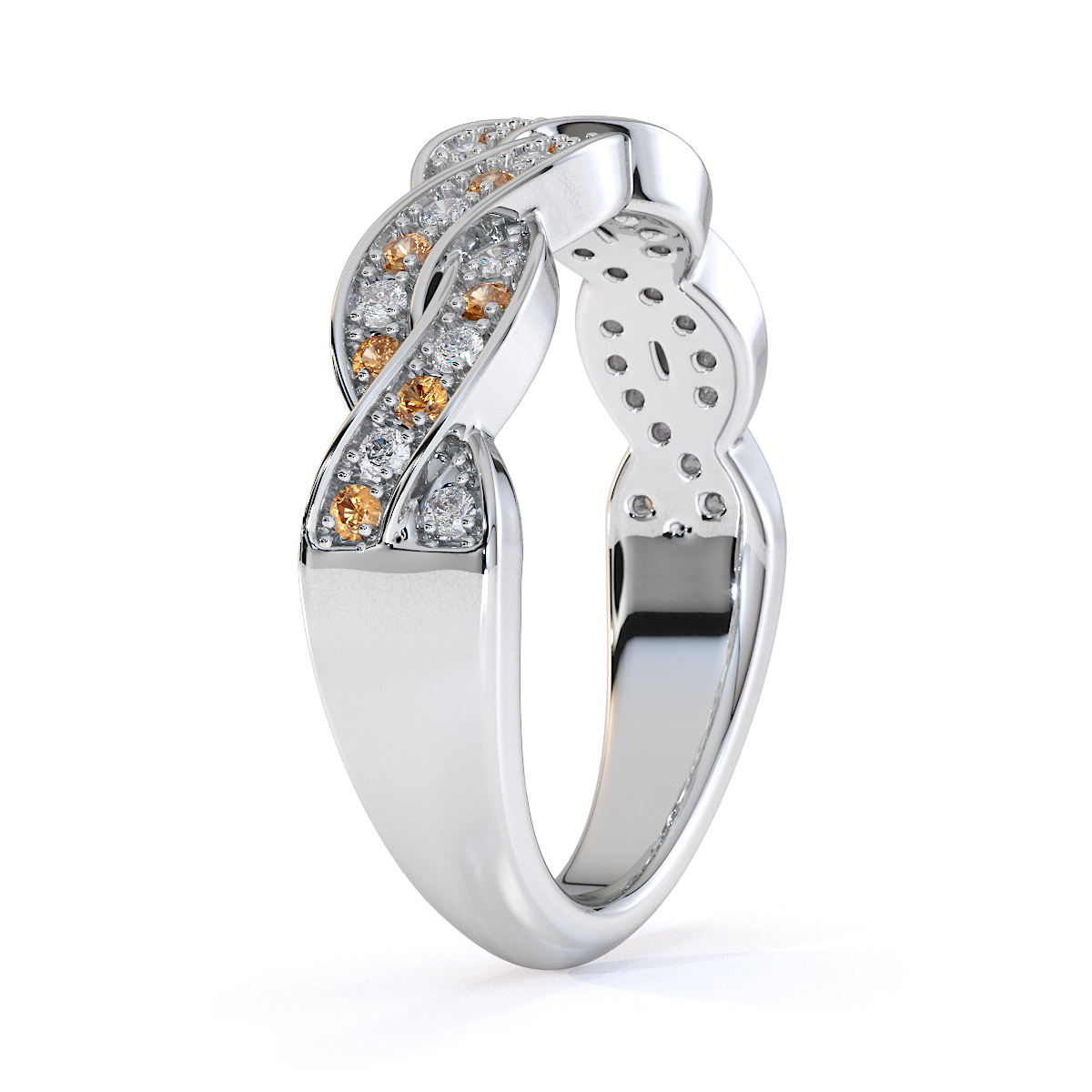 This exquisite half-eternity ring features a stunning combination of citrines and diamonds. The prong setting enhances the brilliance of the gem, creating a luxurious and elegant piece of jewellery perfect for any special occasion.