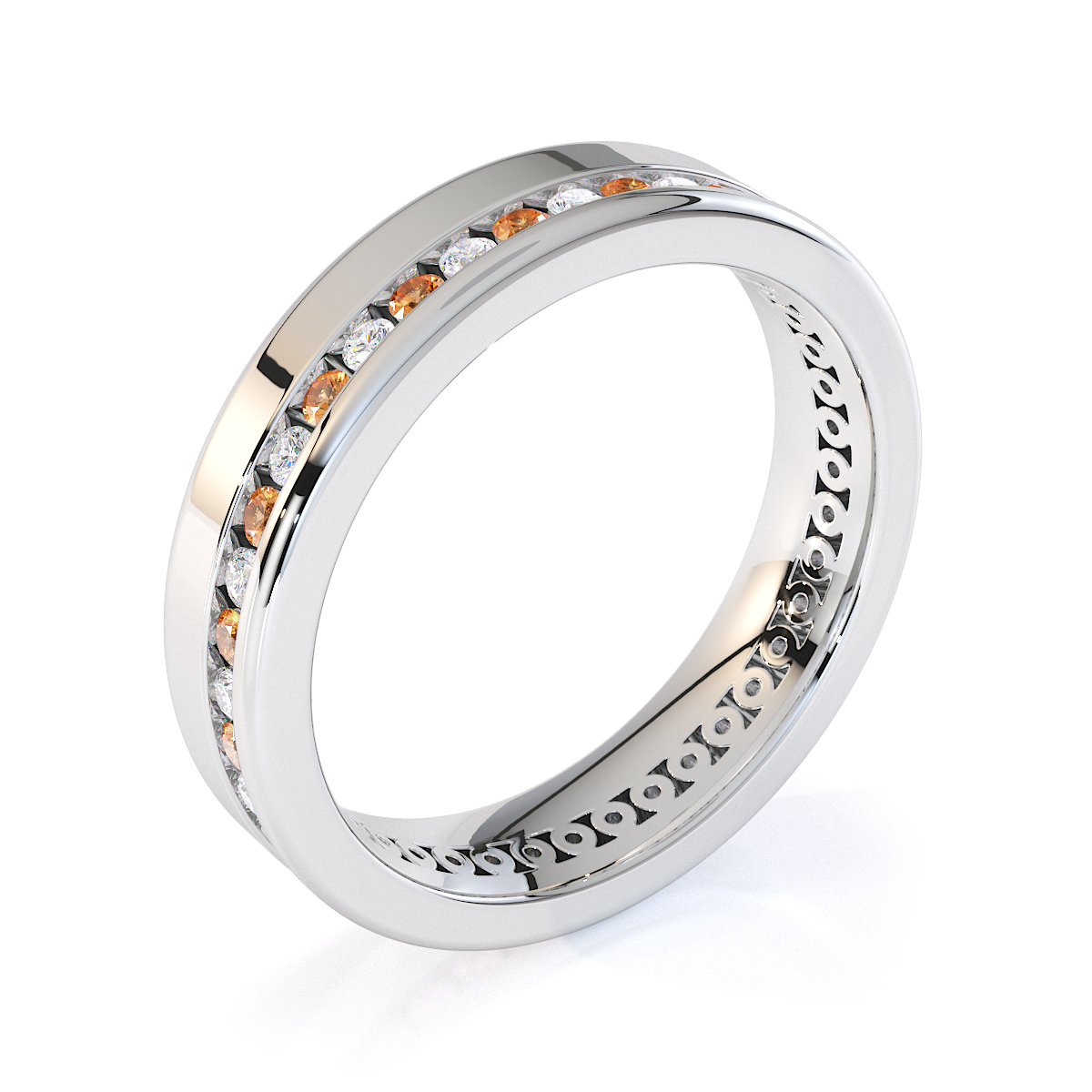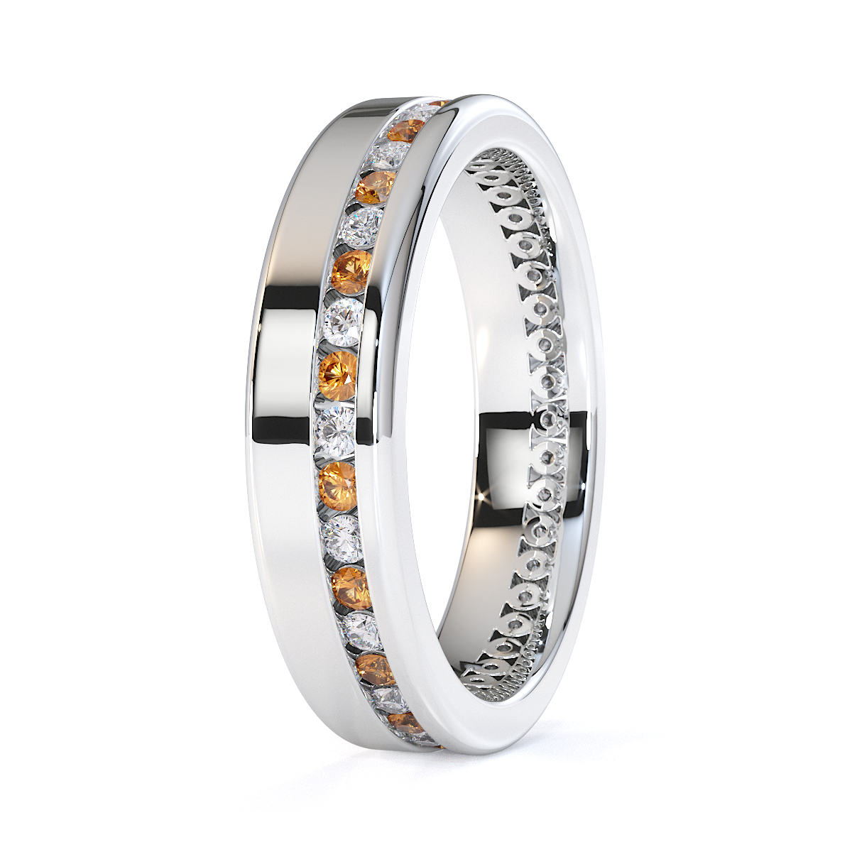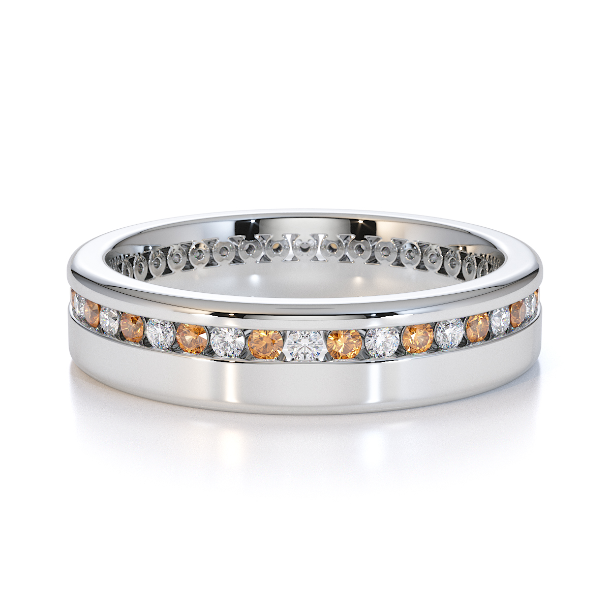Our eternity ring is a stunning symbol of eternal love and commitment, featuring a full eternity design of citrines and diamonds. Crafted with precision, the channel setting enhances the brilliance of each gemstone, creating a mesmerizing sparkle. This timeless and luxurious piece is perfect for those seeking a cherished treasure to last forever.