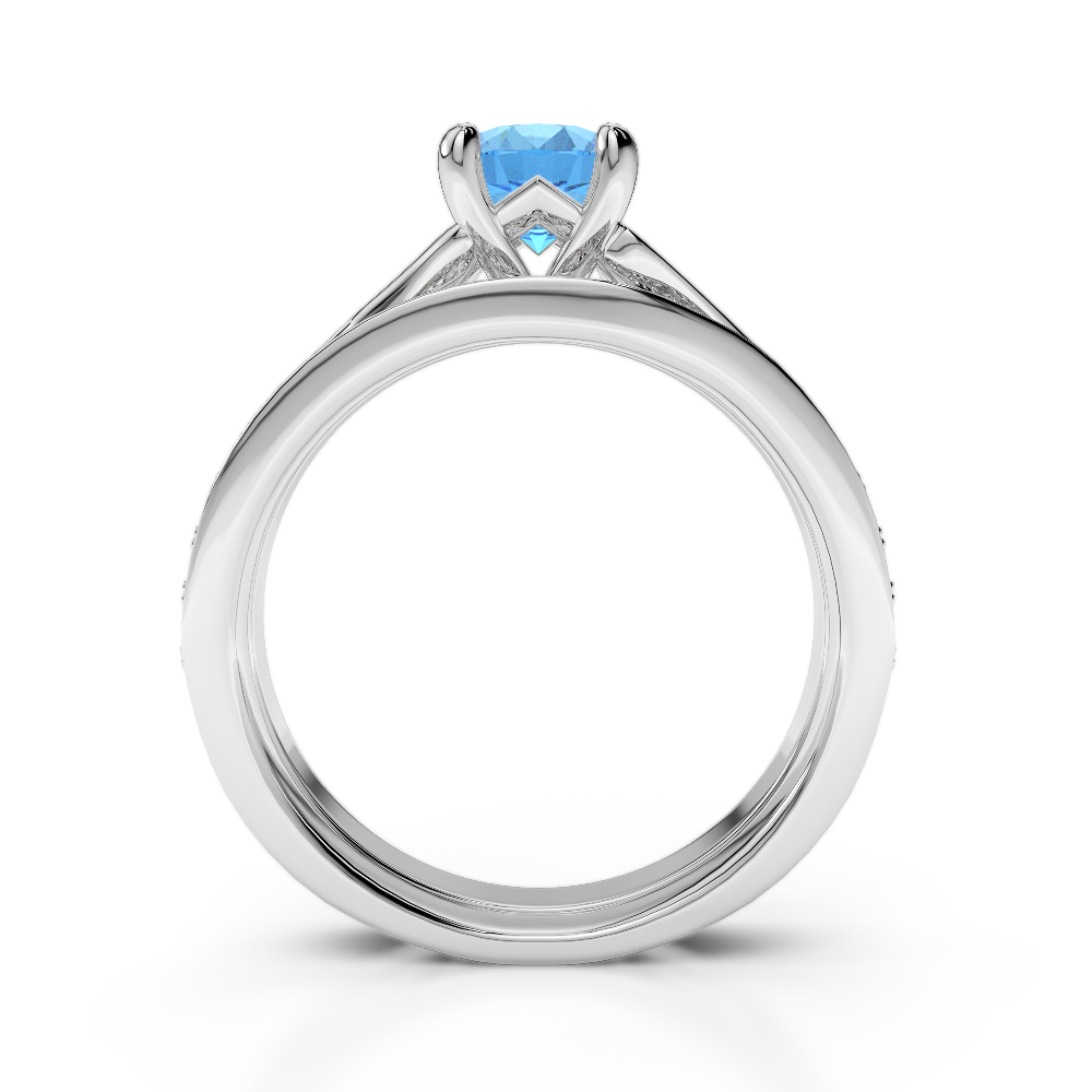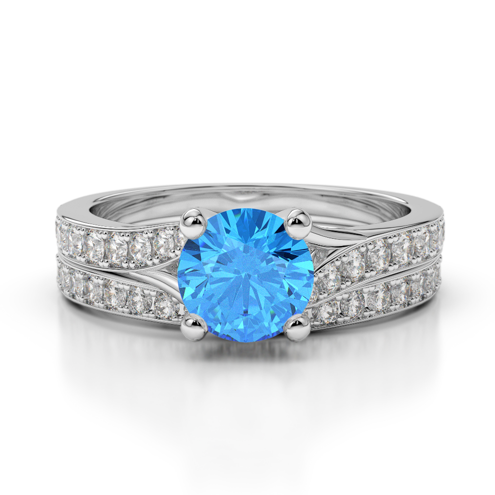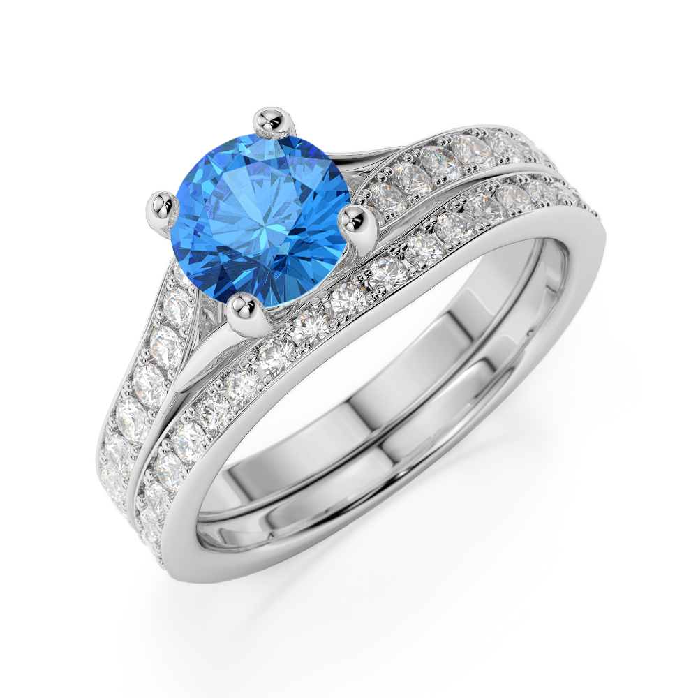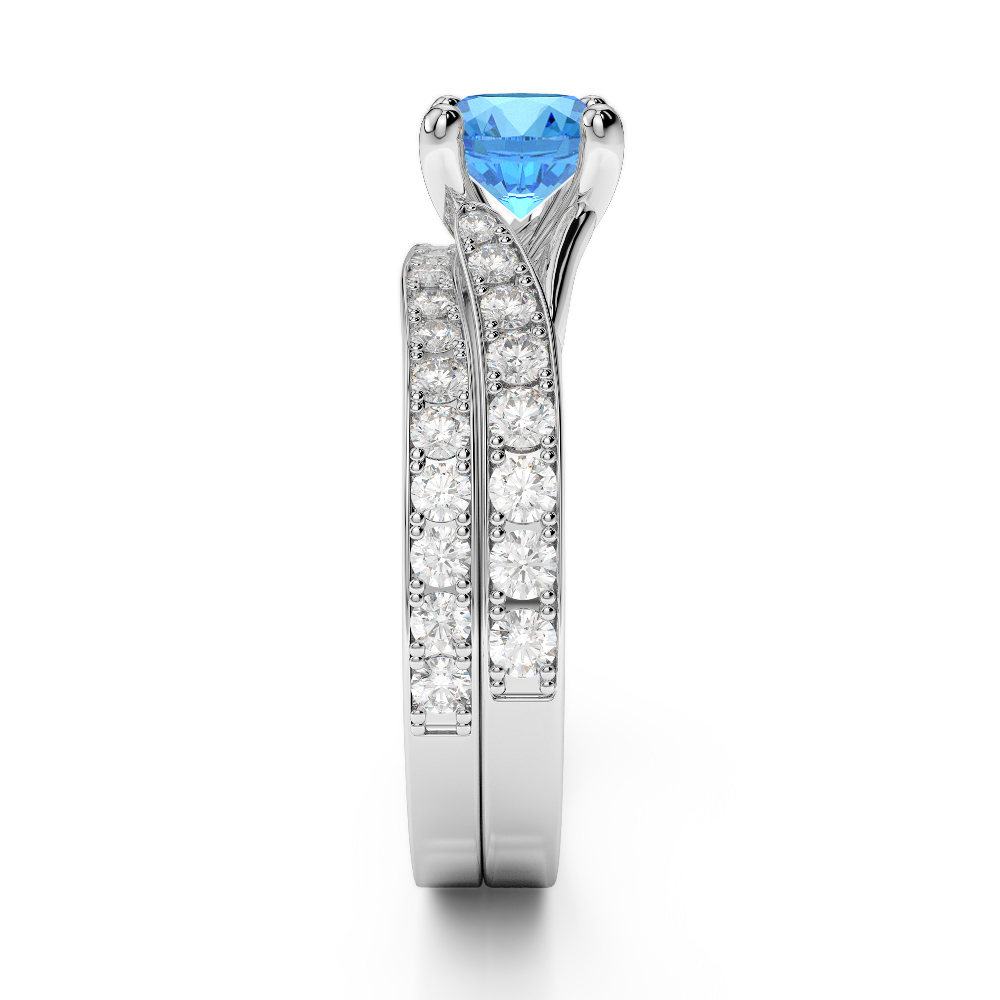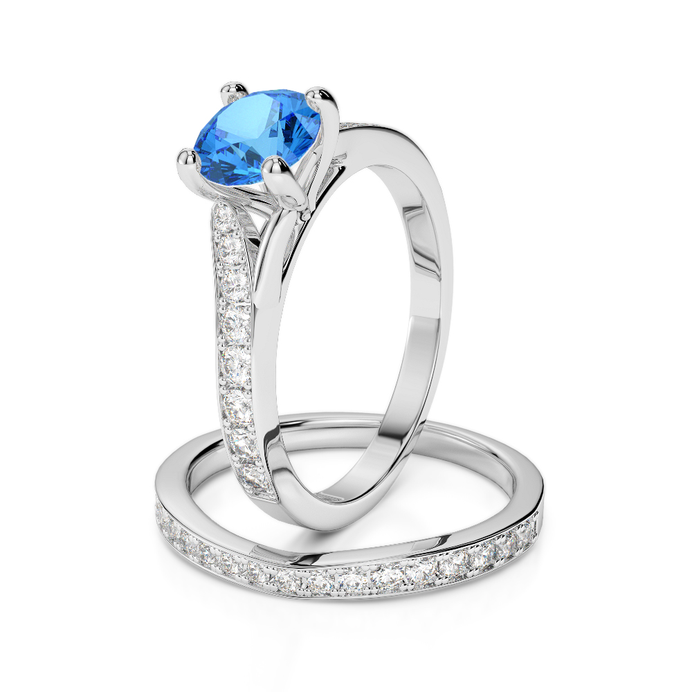 Round Cut Diamond & Blue Topaz Bridal Set Ring 0329