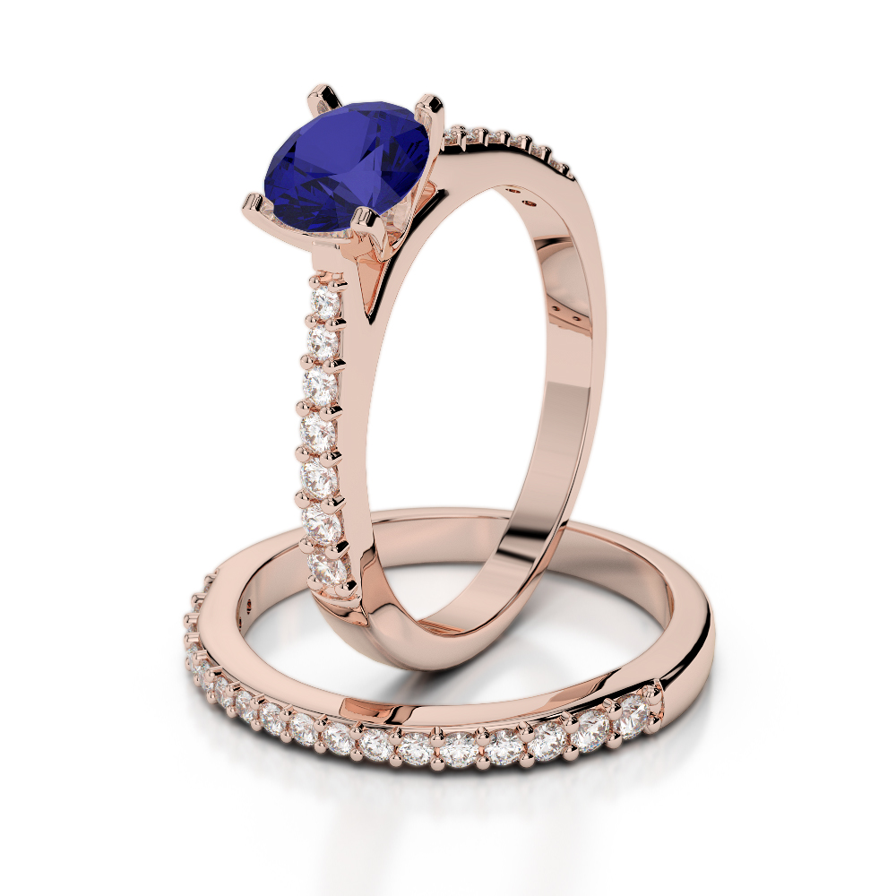 Round Cut Diamond Bridal Set Ring With Blue Sapphire 0343