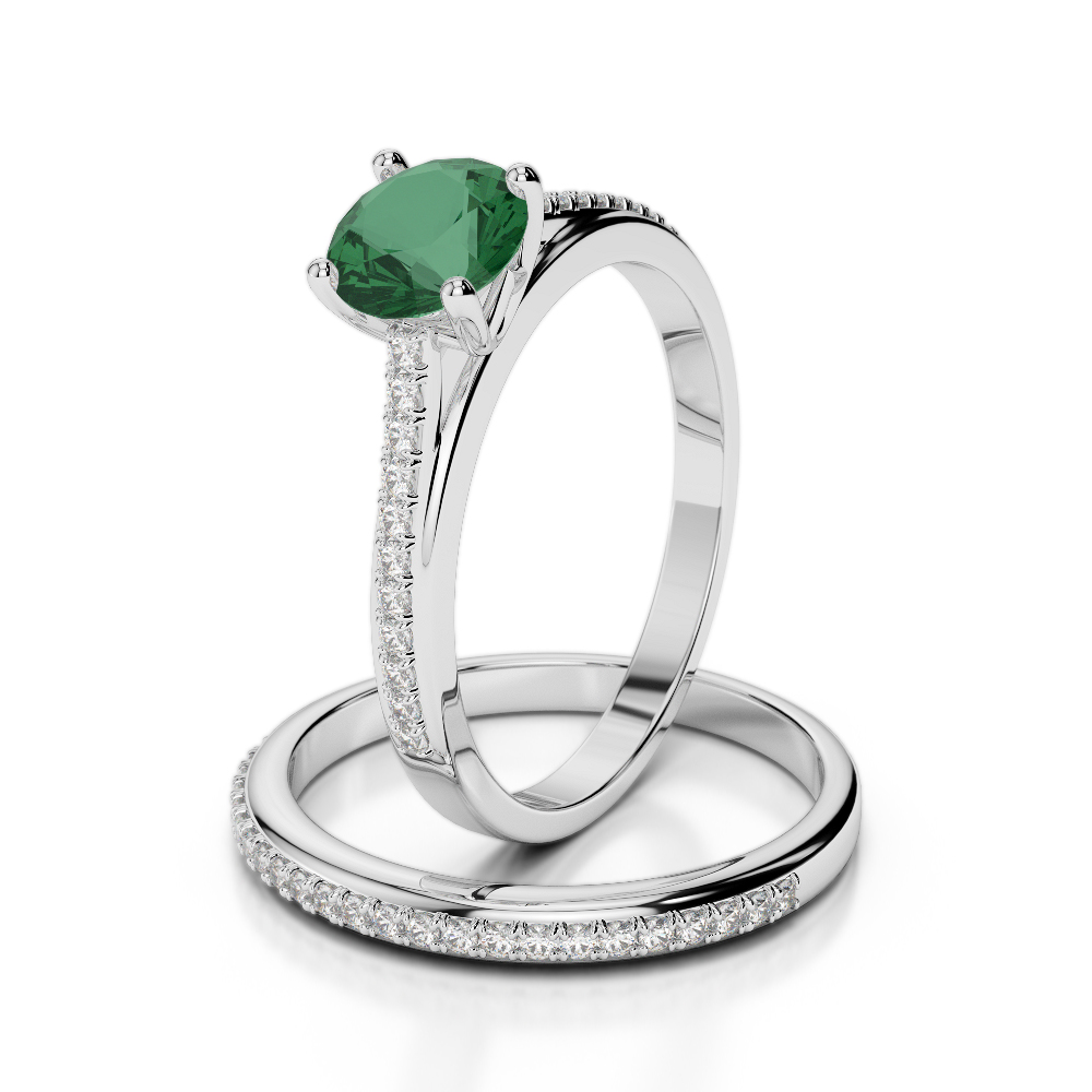 Round Cut Diamond Bridal Set Ring With Emerald 0354