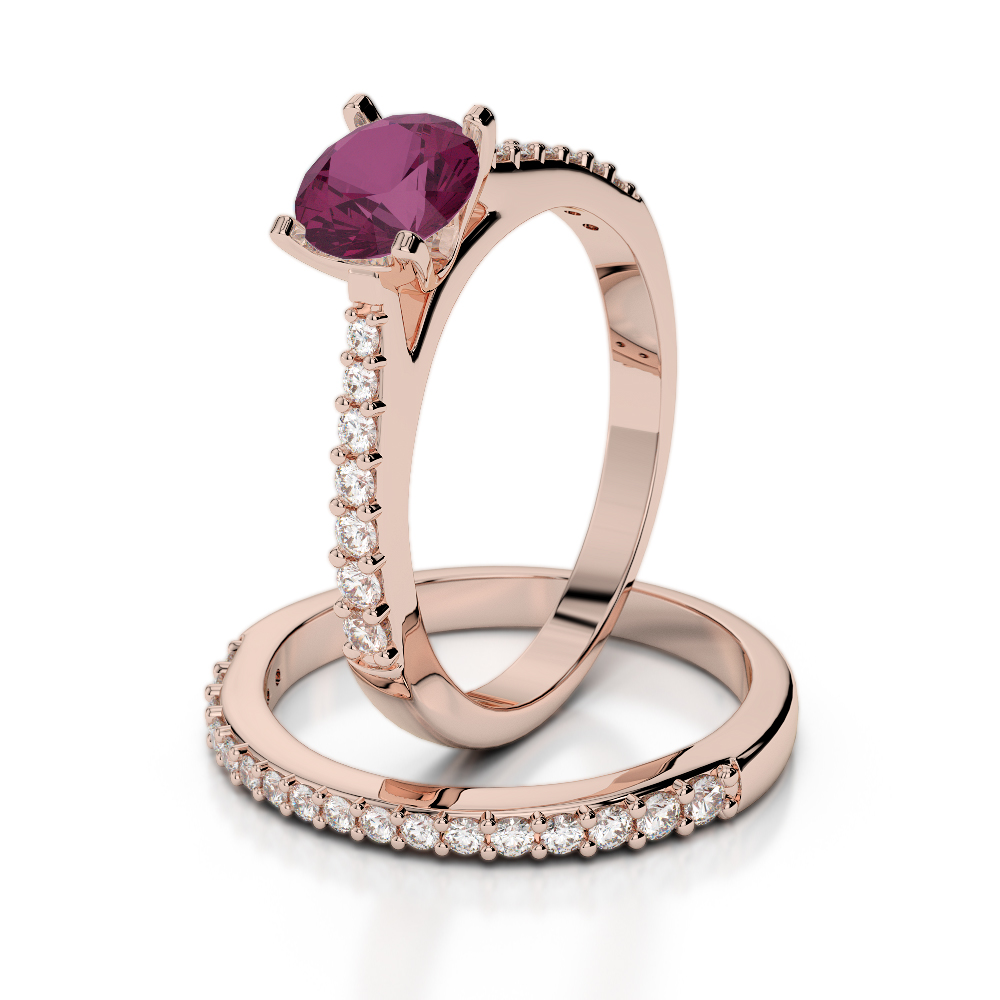 Round Cut Diamond Bridal Set Ring With Ruby 0343