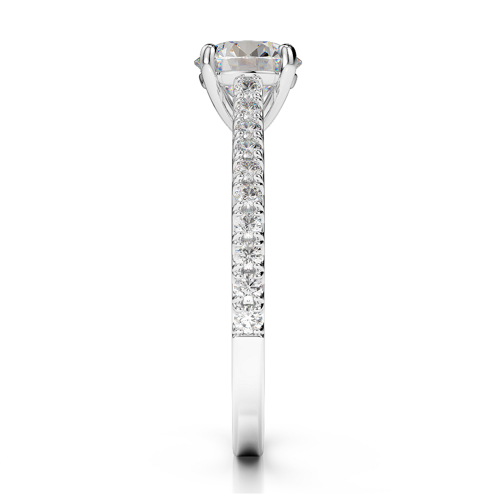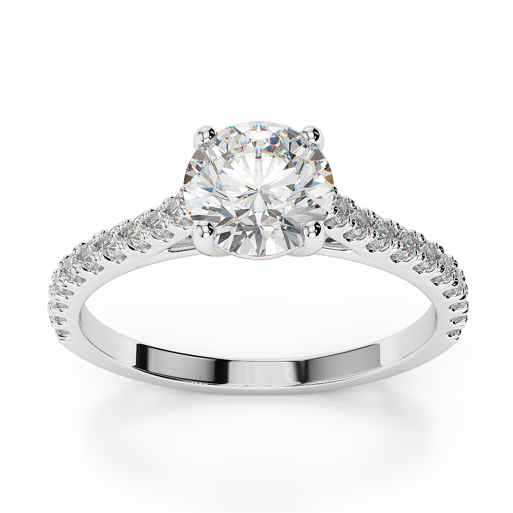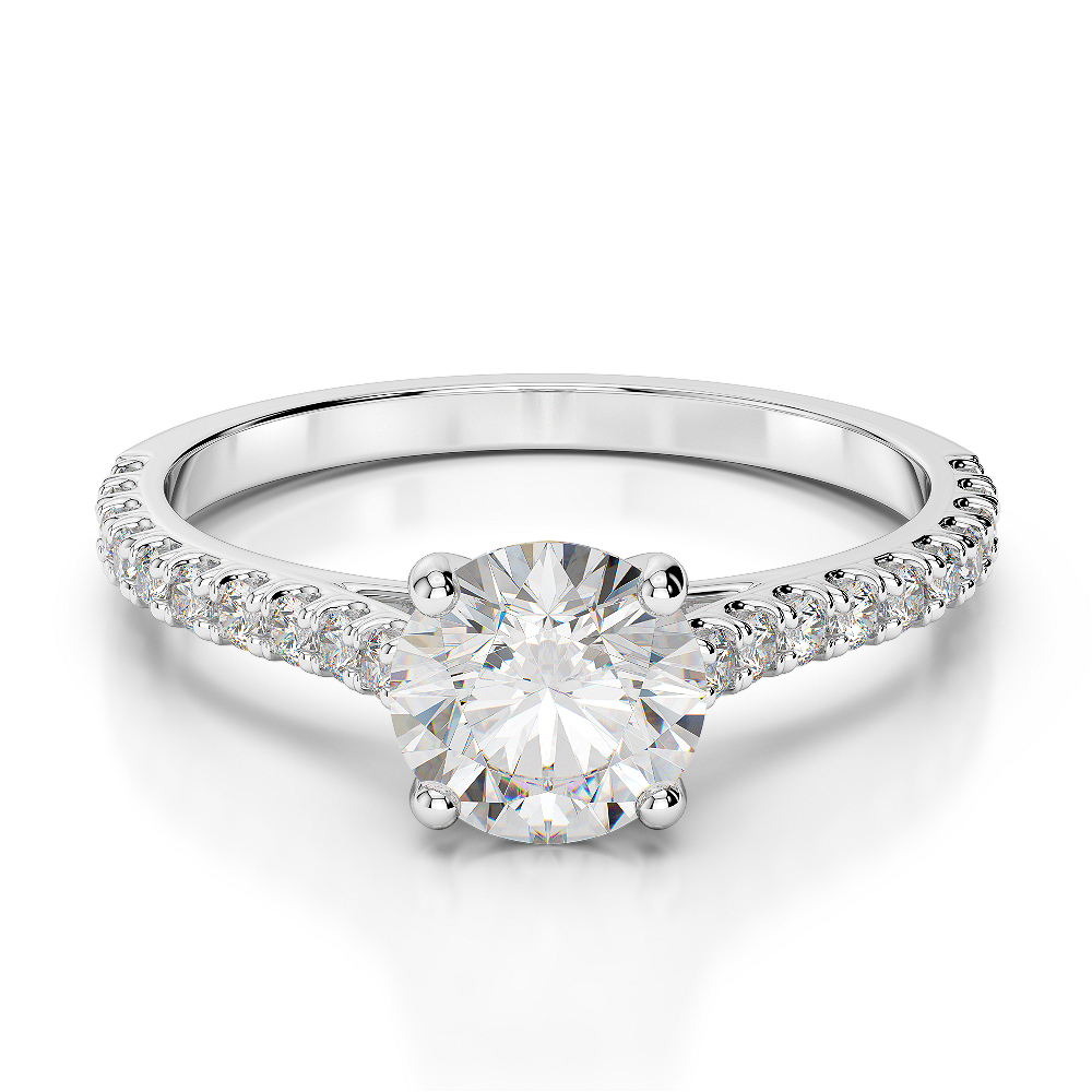 Elevate your love story with our exquisite Diamond Engagement Ring, featuring a stunning round brilliant cut stone that captures the essence of timeless elegance. This masterpiece is meticulously crafted to showcase a dazzling diamond, securely set in a classic prong setting, renowned for its exceptional sparkle and fire, making it the perfect symbol of your everlasting commitment.