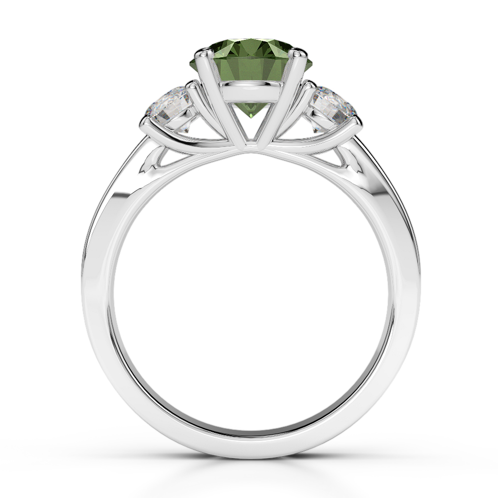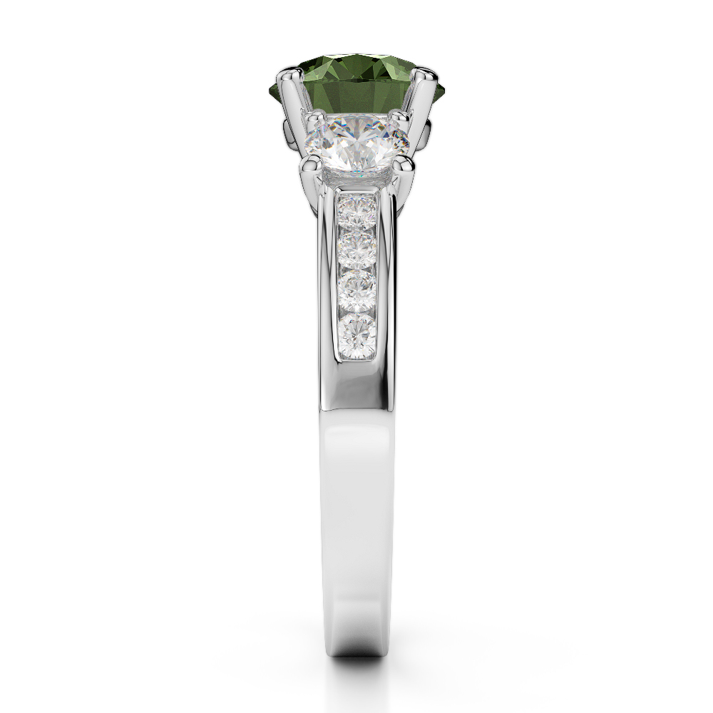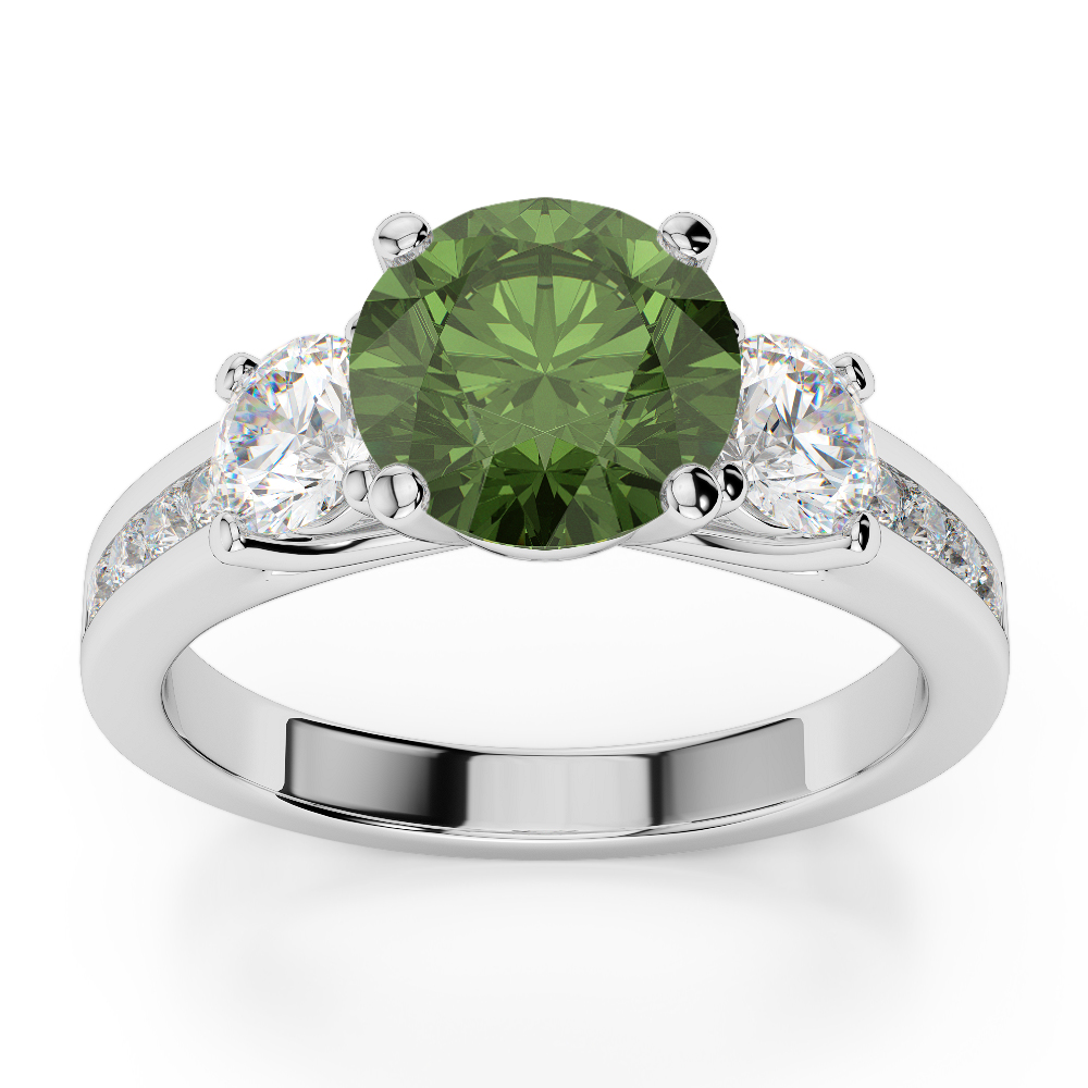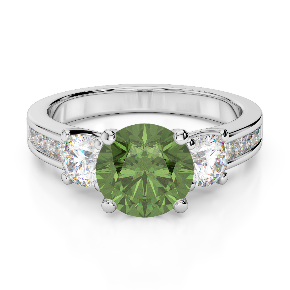 Round Cut Diamond & Green Tourmaline Engagement Ring 0216