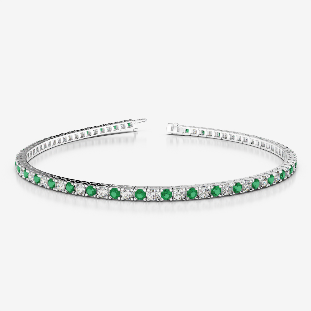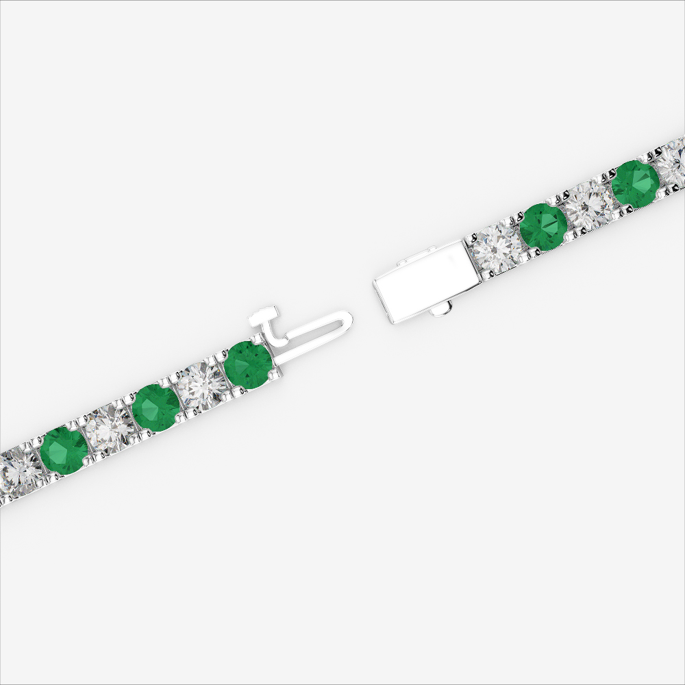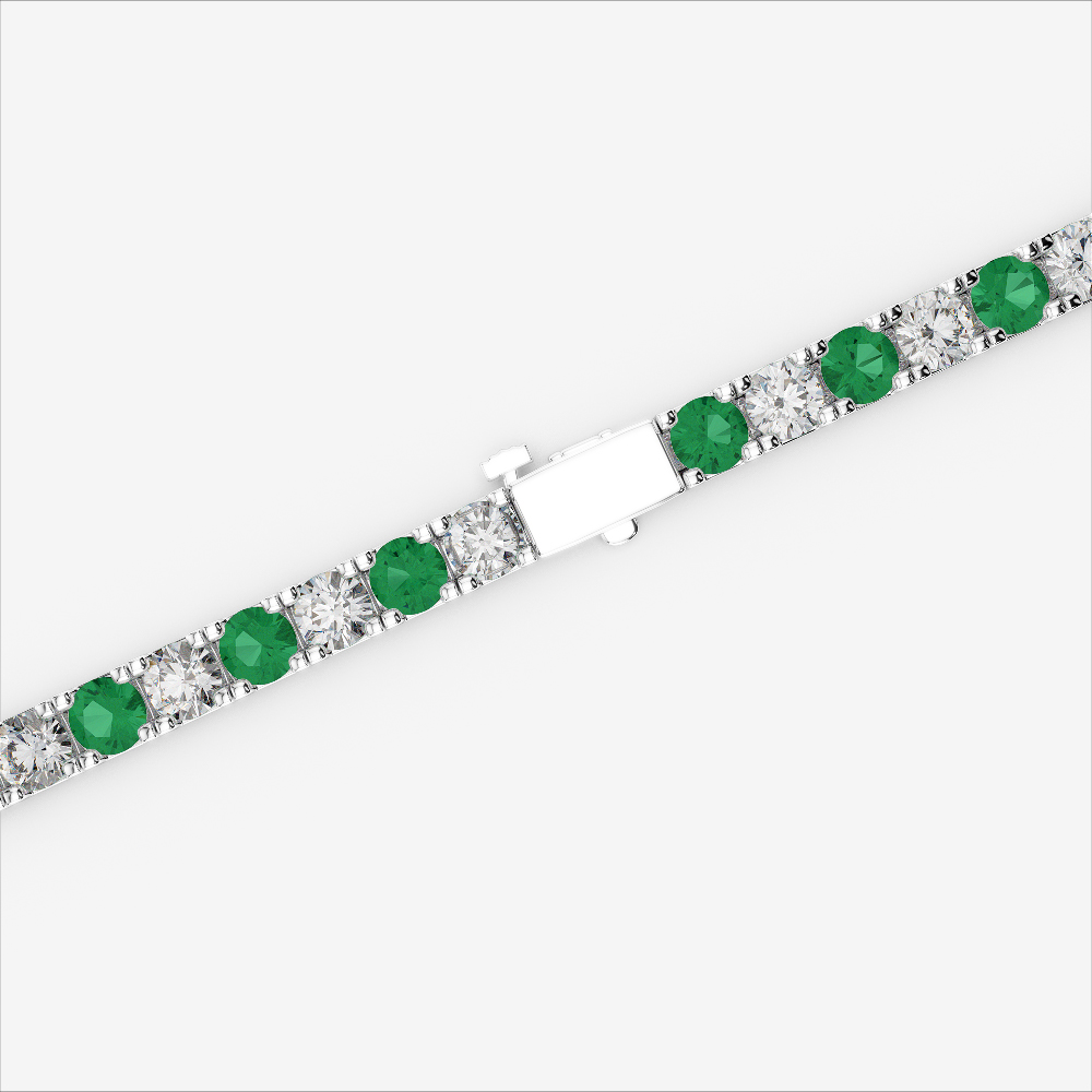 Bring classic glamour to your look with our prong-set round-cut emerald and diamond tennis bracelet. Each gemstone is selected for its brilliance, creating a balanced display of colour and sparkle. Elegant and luxurious, it suits every occasion, from formal gatherings to everyday grace. Gift this to someone you love—or treat yourself to a lifelong touch of radiance.