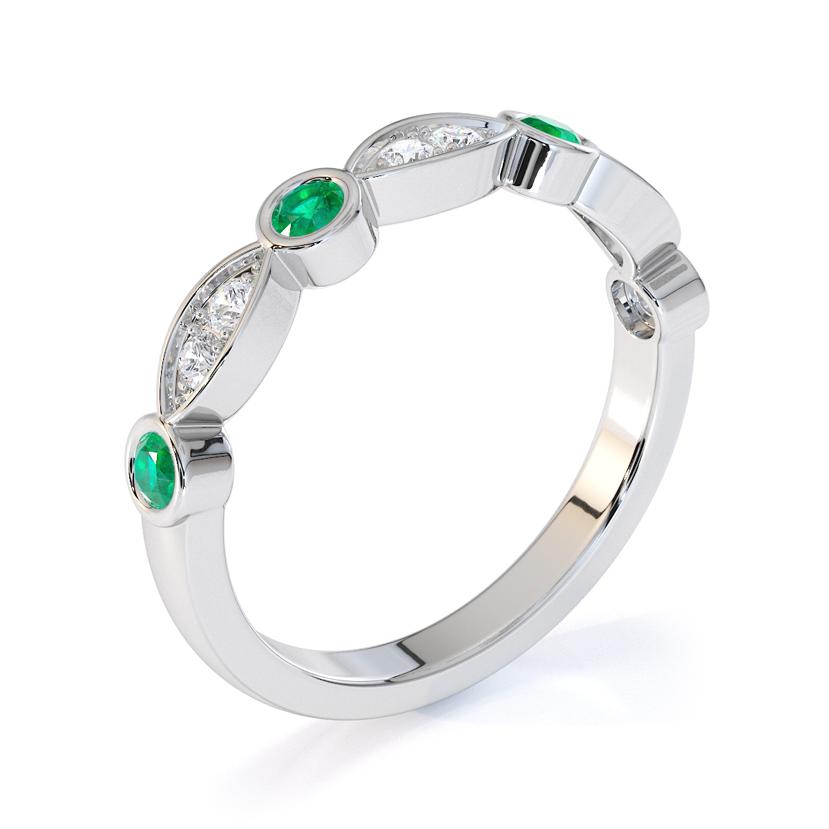 Round Cut Emerald and Diamond Half Eternity Ring 0435