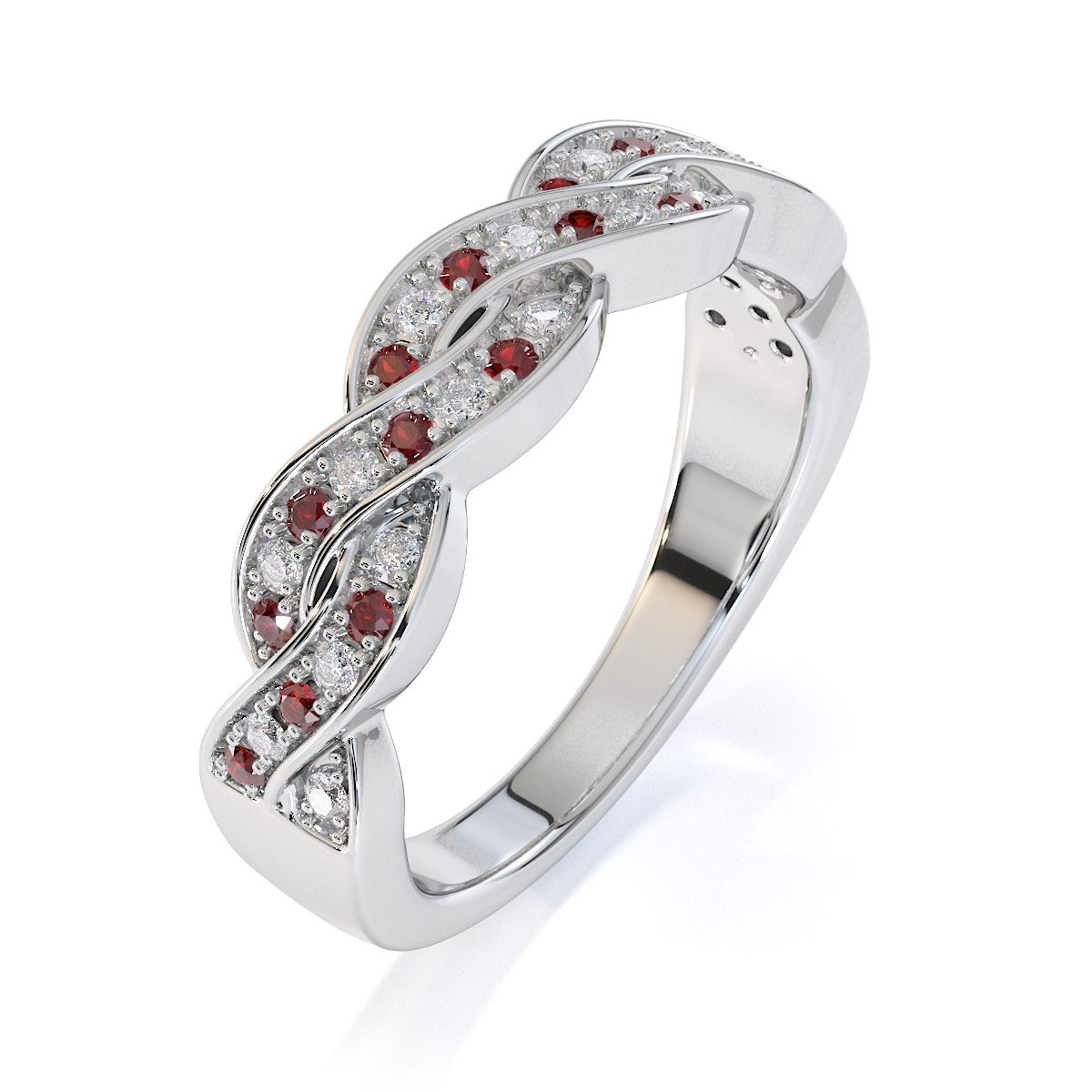 Round Cut Garnet Half Eternity Ring With Diamond 0445