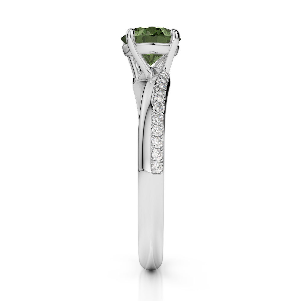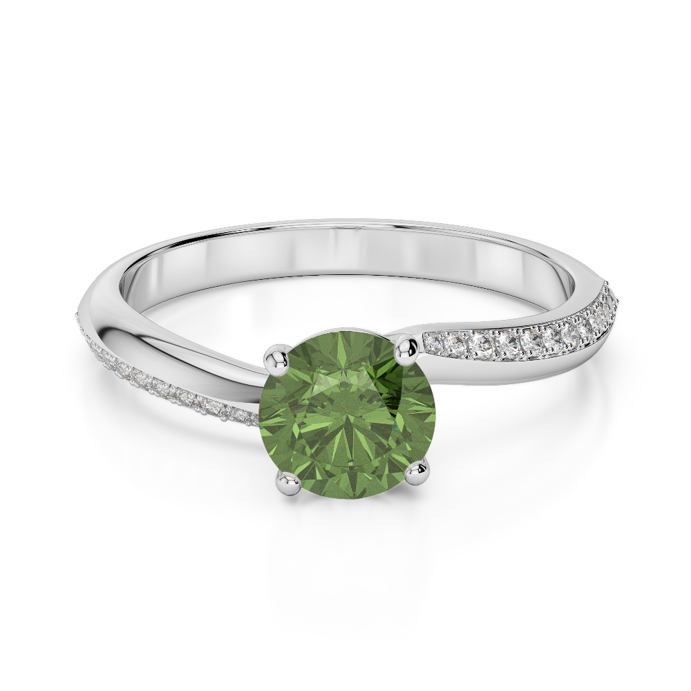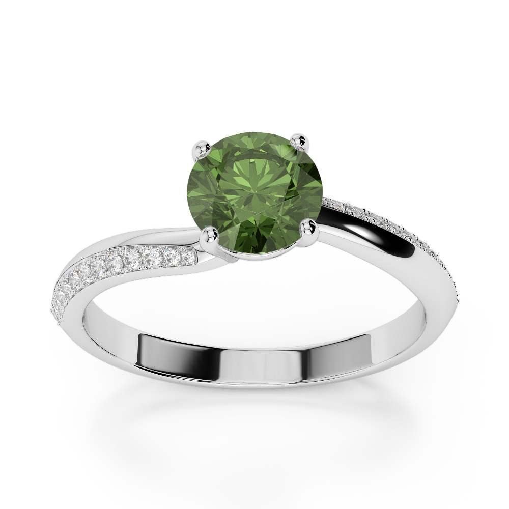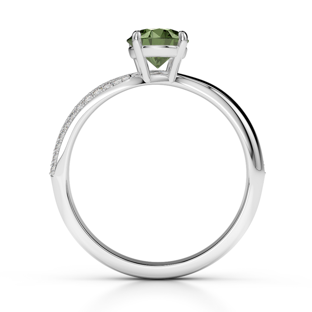 Round Cut Green Tourmaline & Diamond Engagement Ring 0266
