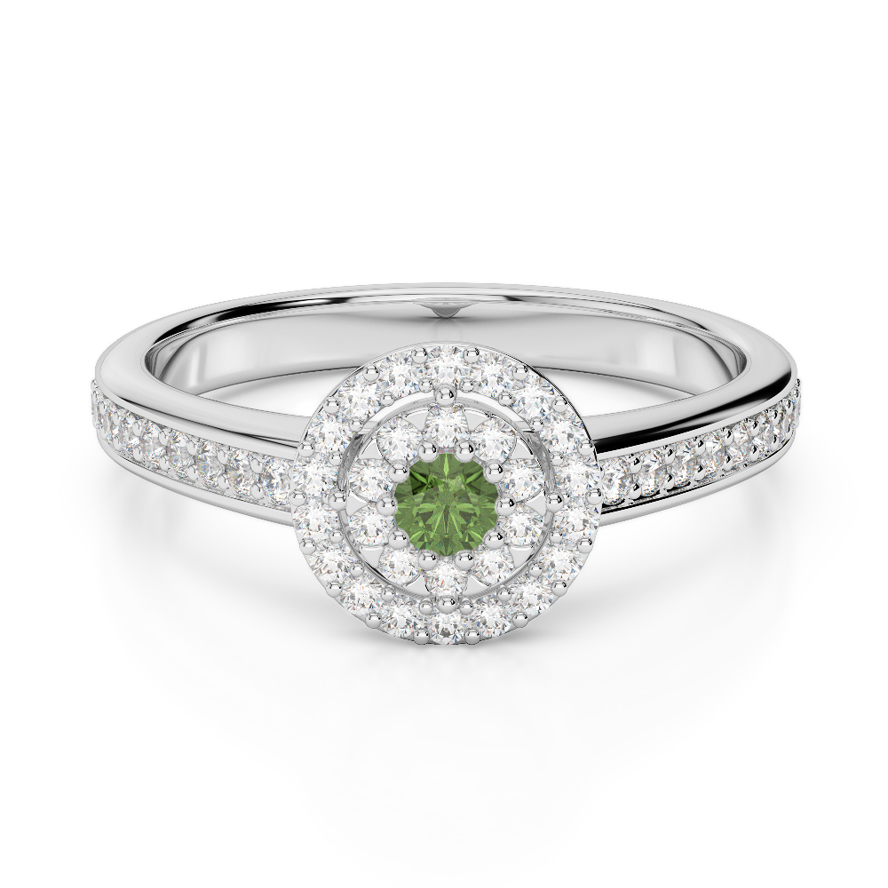 Round Cut Green Tourmaline Engagement Ring With Diamond 0250