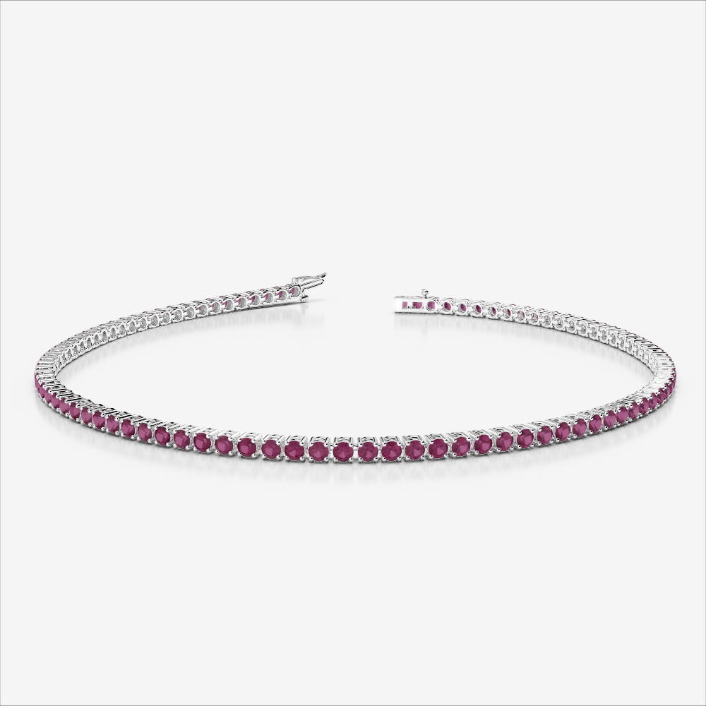 Crafted for those who appreciate the finer things, our Round Cut Ruby Tennis Bracelet is a symbol of sophistication. Each Ruby is precisely placed in a prong setting to capture the maximum brilliance.