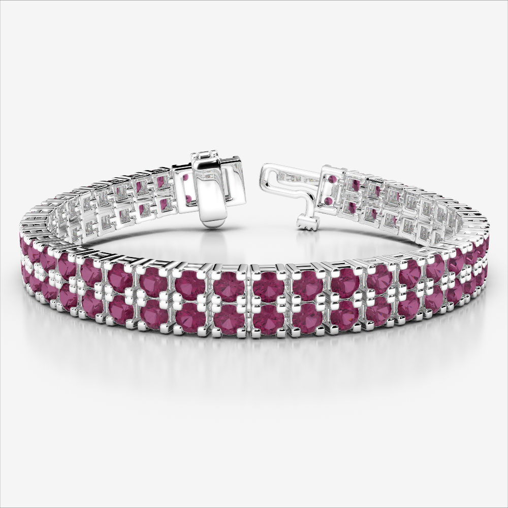 Designed to dazzle, this Double Row Round Cut Ruby Tennis Bracelet features a graceful row of prong set Rubies. Each stone is placed to catch and reflect light from every angle, delivering timeless beauty.