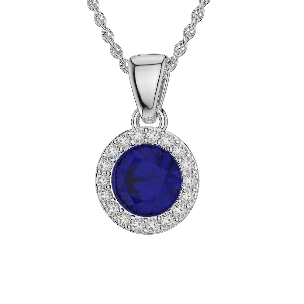 Round Shape Blue Sapphire and Diamond Necklaces 0573